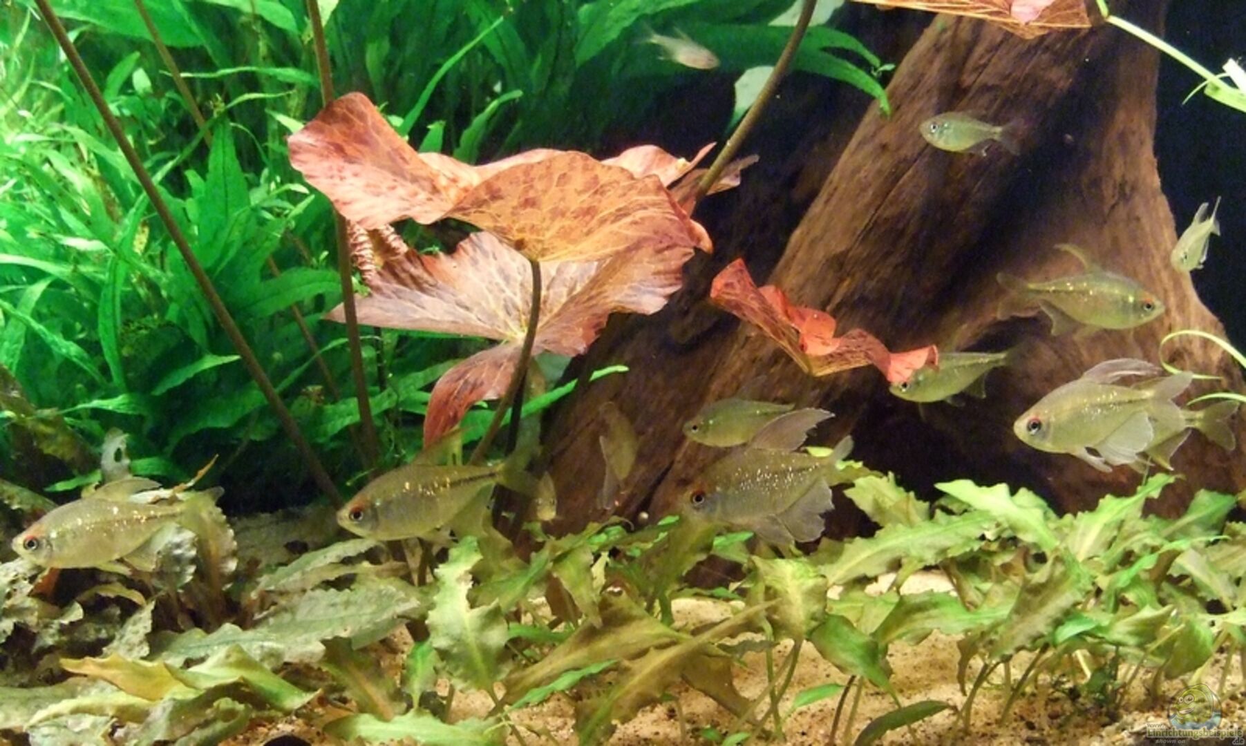 22 + ? x Moenkhausio pittieri (Brillantsalmler) 9 x Corydoras sterbai (Orangeflossen-Panzerwels) 4 x Caridina japonica (Amanogarnle) (Restbestand) ? x Caridina ??? (könnte Guppygarnele sein) (kann ich nicht mehr zählen)
