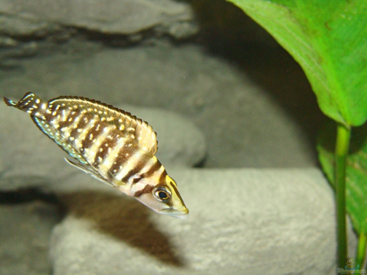 Cyprichromis leptosoma ´Blue Flash/Mpulungu´ 2/4 Chalinochromis bifrenatus 1/1 (?) Julidochromis regani ´gold´ 5 ?/? ( ca 5 cm) Altolamprologus calvus ´black zaire´ 5 ?/? (ca 4- 5 cm) Die J. regani und A. calvus sollen nach der Pärchenbildung auf jeweils ein Paar reduziert werden. Danach ist evt. noch ein Schneckenbuntbarschpärchen und eine Aufstockung der Leptosoma geplant. Im Moment finde ich das Becken aber voll genug.