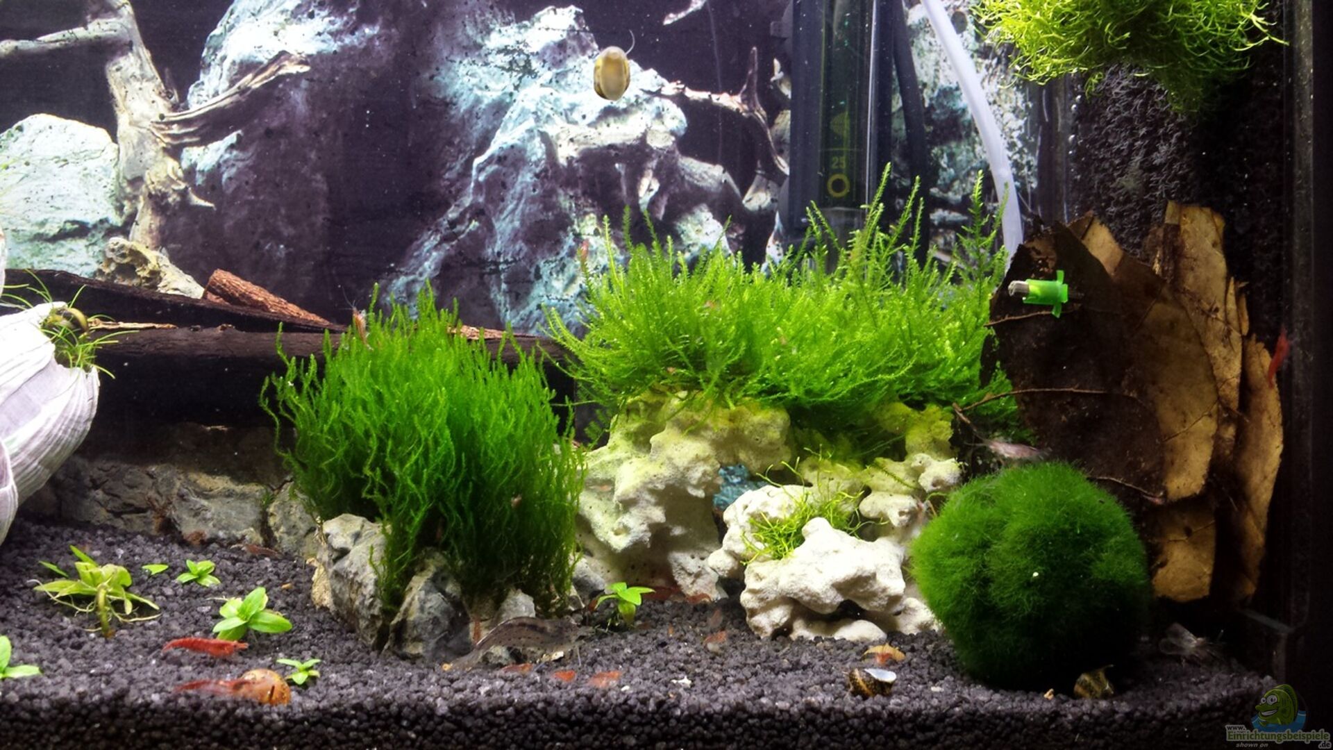 Javamoos auf Koralle gebunden Riccia fluitans Pogostemon helferi Moos Kugel Eleocharis sp. 'Mini' Staurogyne repens Taxiphyllum spec. Flame Eleocharis sp. 'Mini' ist ja eine schöne Pflanze aber die pflege ist nicht so toll also habe ich bei der Neueinrichtung darauf geachtet das ich sie in ein geschlossenen Bereich einpflanze damit sie sich nicht mehr so ausbreiten kann.