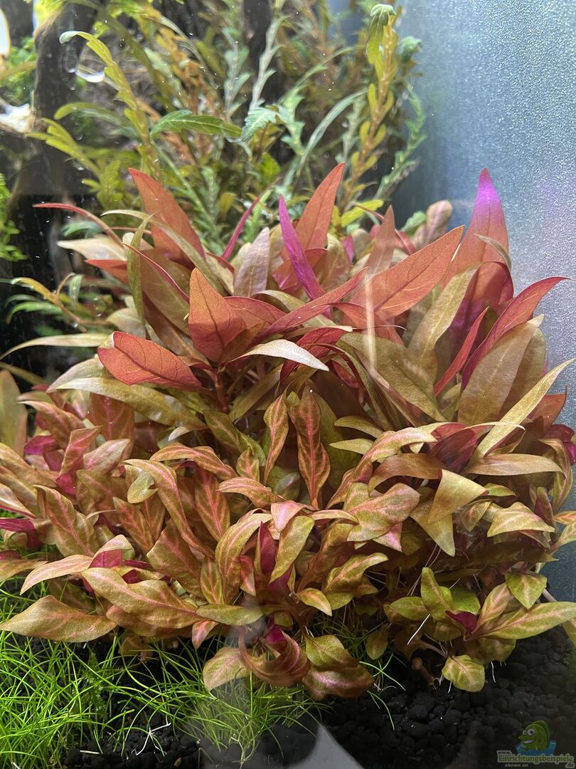 Hier gibt es Infos zu Alternanthera reineckii (Breitblättriges Papageienblatt) und Beispiele für die Einrichtung eines Aquariums mit dieser Pflanze.
