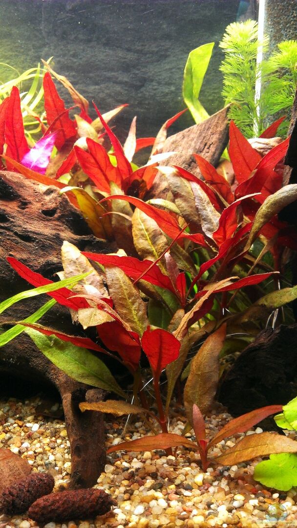 Hier gibt es Infos zu Alternanthera reineckii (Breitblättriges Papageienblatt) und Beispiele für die Einrichtung eines Aquariums mit dieser Pflanze.