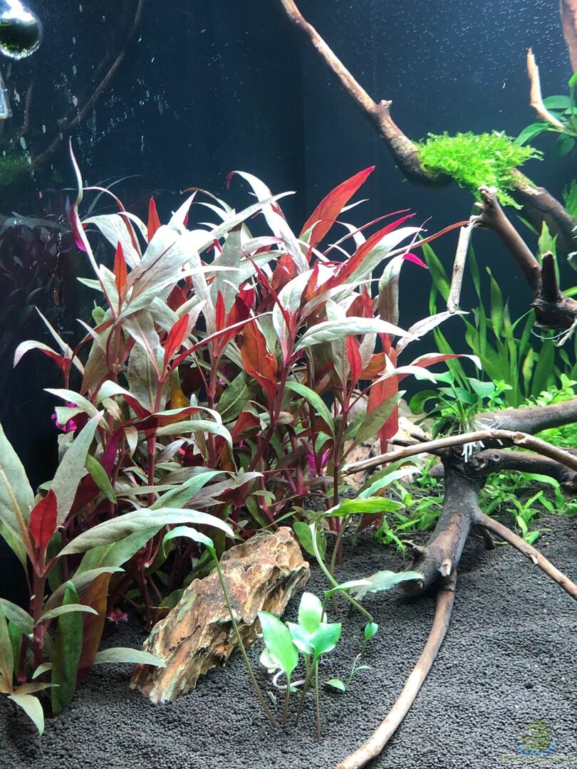 Hier gibt es Infos zu Alternanthera reineckii (Breitblättriges Papageienblatt) und Beispiele für die Einrichtung eines Aquariums mit dieser Pflanze.