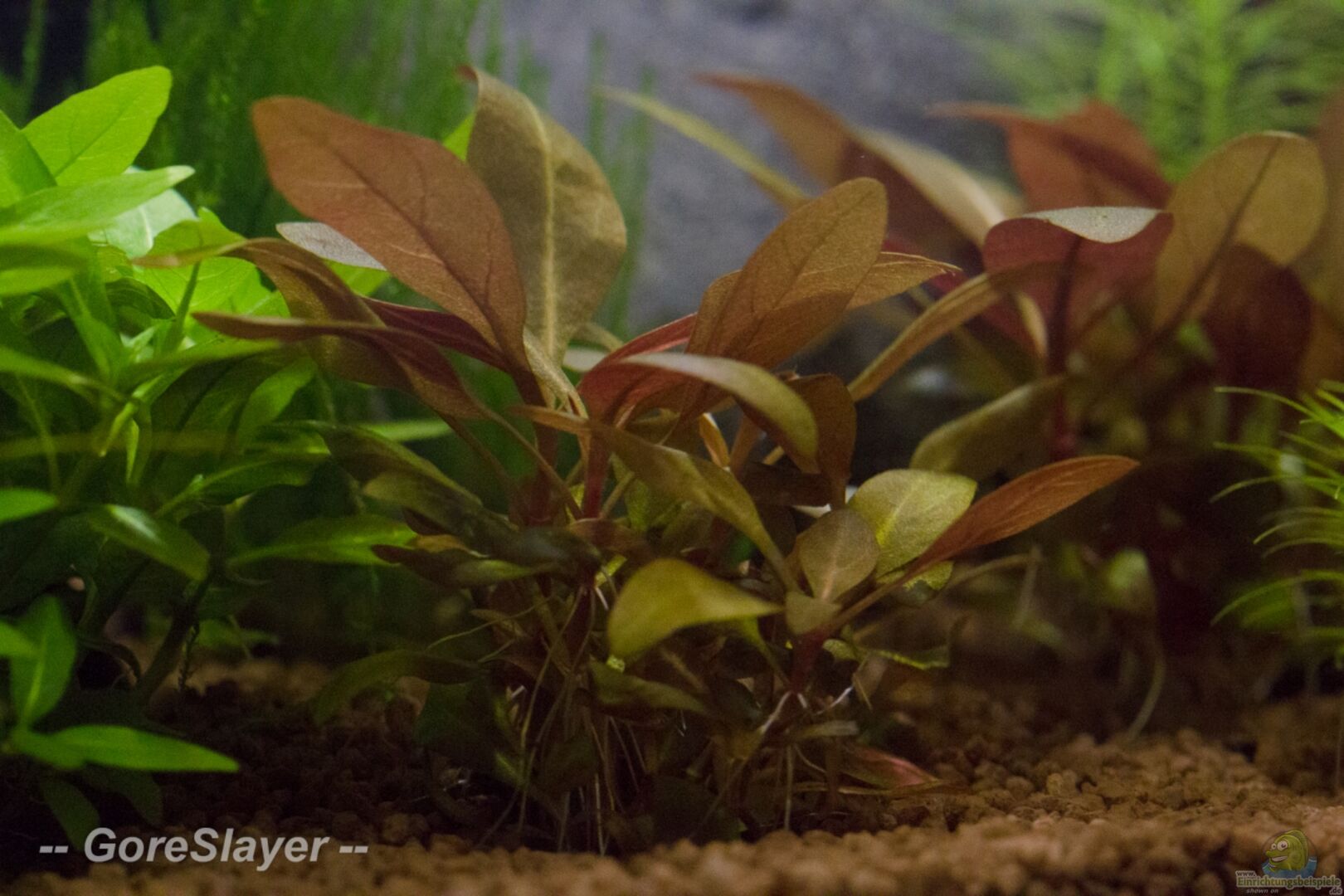 Hier gibt es Infos zu Alternanthera reineckii (Breitblättriges Papageienblatt) und Beispiele für die Einrichtung eines Aquariums mit dieser Pflanze.