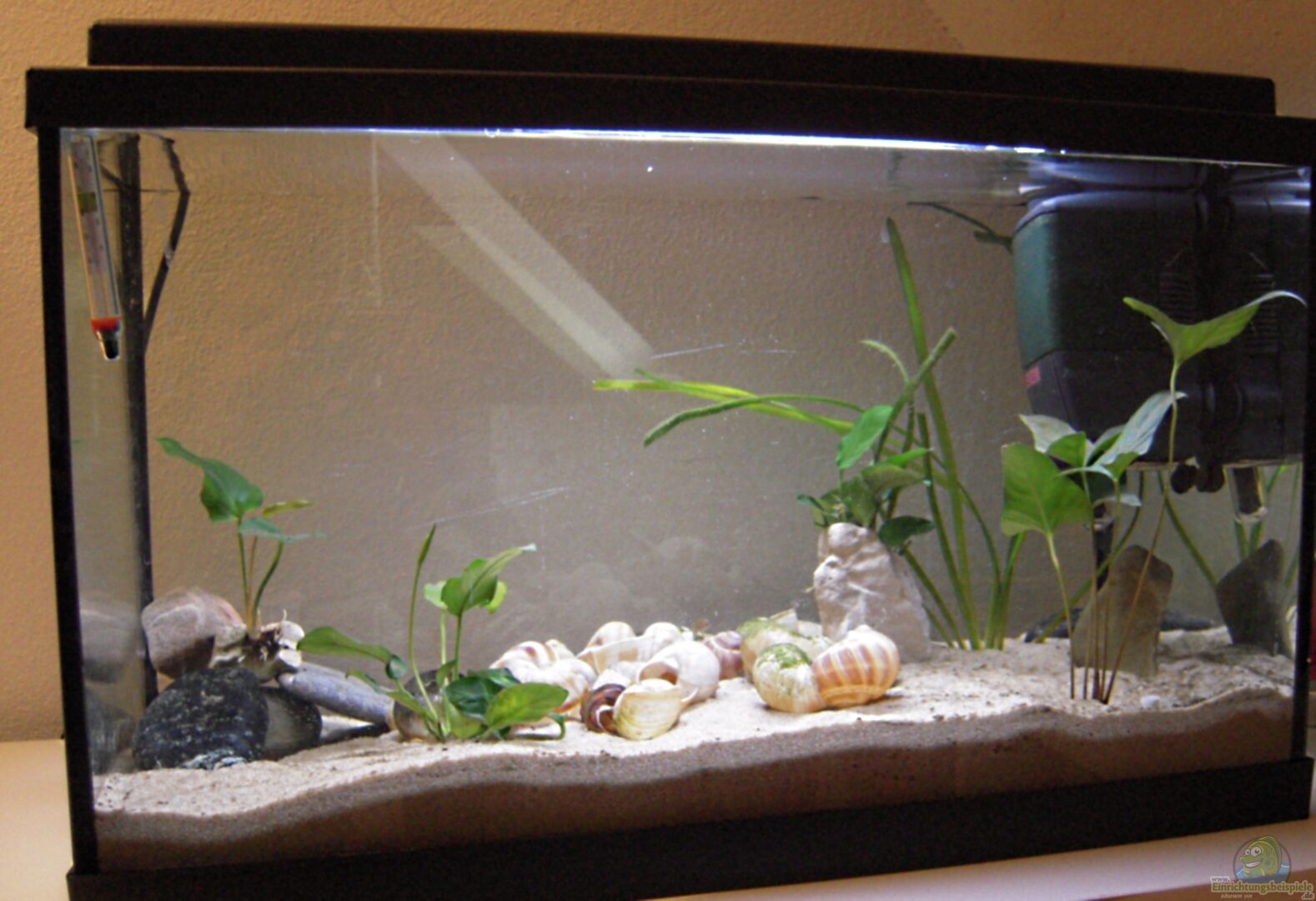 Das Aquarium haben wir Geschenkt bekommen und bis auf die Leuchtstoffröhren nichts gewechselt..