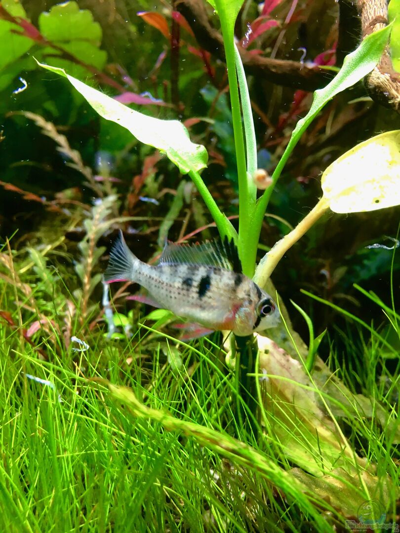 Besatz: 1/2 Apistogramma Wilhelmi 1/1 Bolivianischer Schmetterlingsbuntbarsch - Microgeophagus altispinosa 01x Augenflecksalmler - Aphyocharax paraguayensis 15x Otocinclus 05x L66 02x L15 03x L46 15x Amanogarnelen Haltung: Apistogramma wilhelmi Ich habe diese wunderbaren Fische von einem privaten Züchter bekommen. Bei mir verhalten sie sich relativ ruhig. Das Männchen ist jedoch relativ territorial und verjagt das zur zeit nicht laichbereite Weibchen sowie die Amanogarnelen. [...]