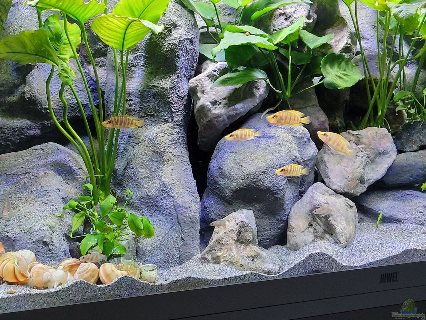 Hier findest Du traumhaft schöne Aquarien, die mit Buntbarschen der Art Dimidiochromis compressiceps (Messerbuntbarsch) aus dem Malawisee besetzt sind.