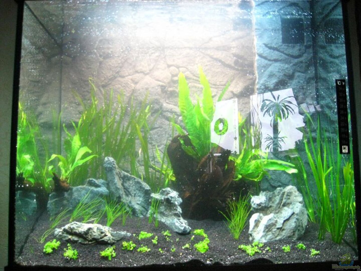 Hindergrund: Vallesneria spiralis Heteranthera zosteraefolia Microsorum pteropus( auf Wurzel gebunden ) Vordergrund: Eleocharis accicularis Pogostemon helferi Chladaflora( Mooskugel auf Wurzel gebunden) entfernt Lilaeopsis brasiliensis Pflanzendünger Easy- Life Profito , Easy Carbo und Easy Ferro