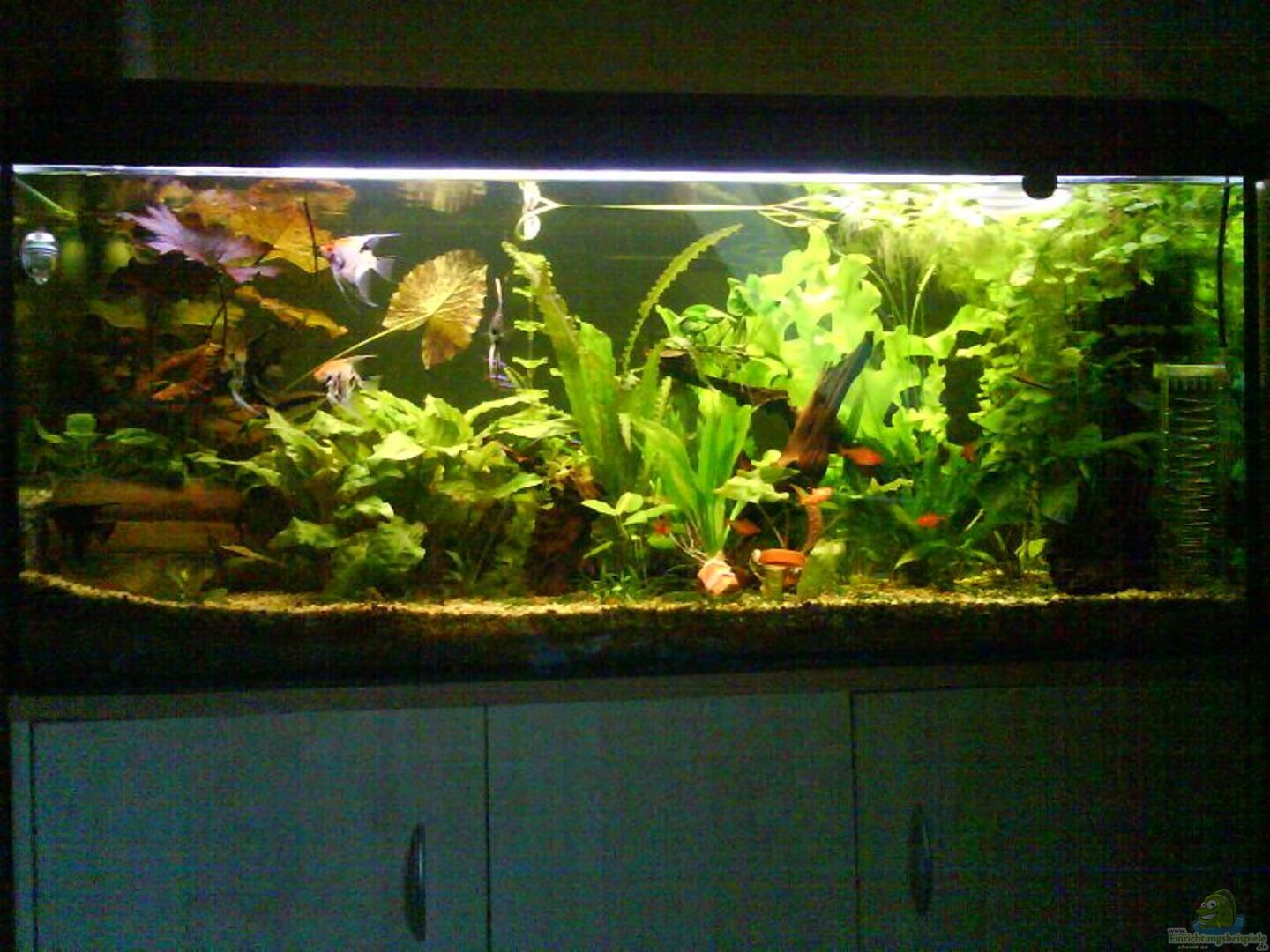 Das Becken ist so aufgestellt das es eine art Raumteiler ist! So ist im Zimmer eine Schlafecke mit direktem Blick ins Becken geworden und auf der anderen Seite ist eine schöne Sitzecke mit dem Aquarium im Rücken!