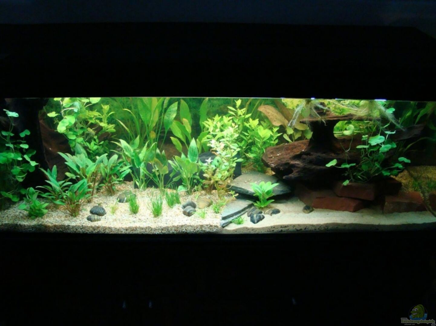 Becken von EFS; Juwel Multilux Abdeckung; Unterschrank ist selbstgebaut aus Multiplex-Schalholz Eingerichtet seit 19. November 2008