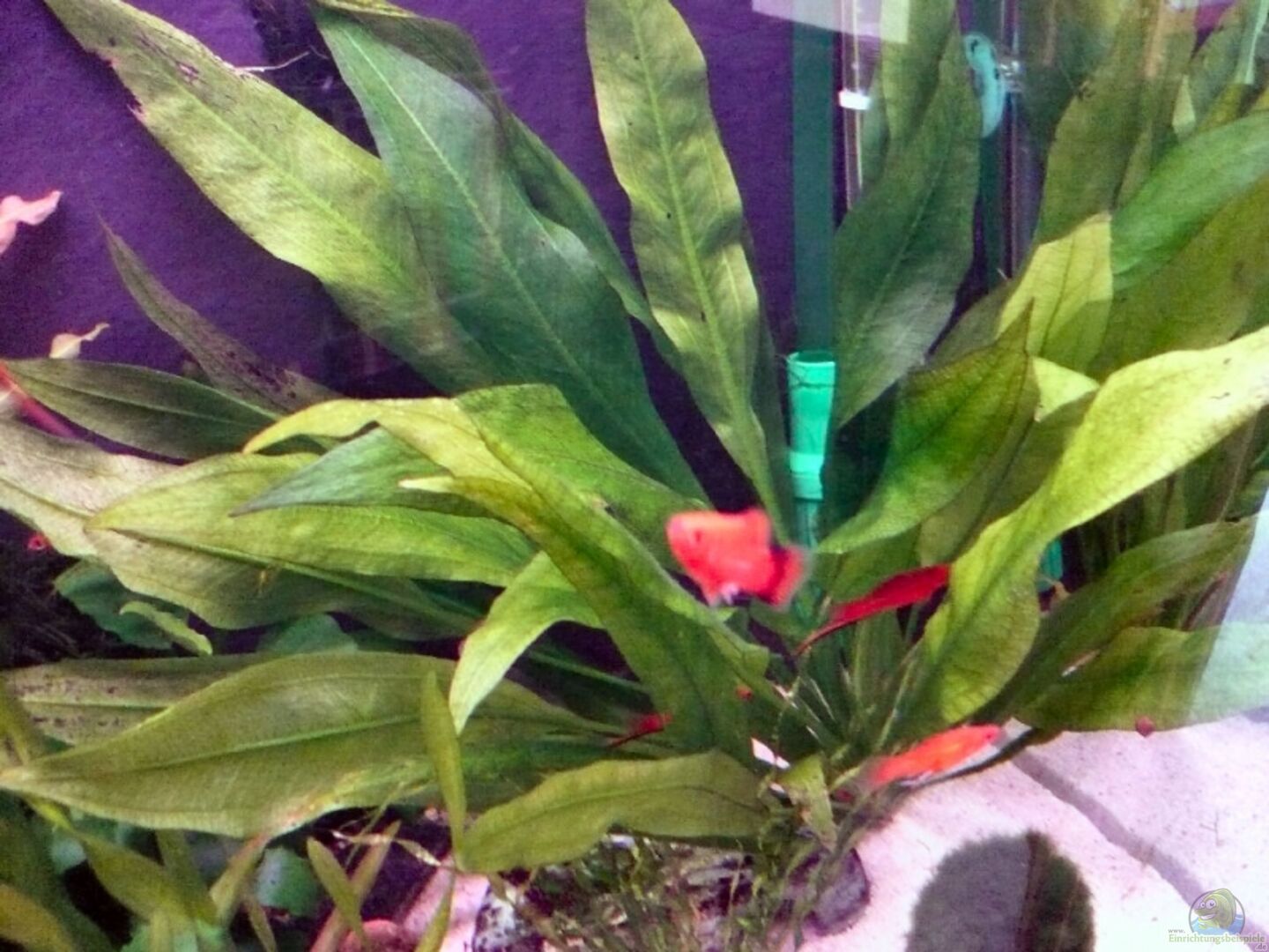 hmm - wenn ich genau rausbekommen habe wie die Pflanzen heissen, poste ich es Euch sofort ;-) soviel ist bekannt: Wasserpest, Fettblatt, 3 Mooskugeln, Vallisnerien, Anubia, ....