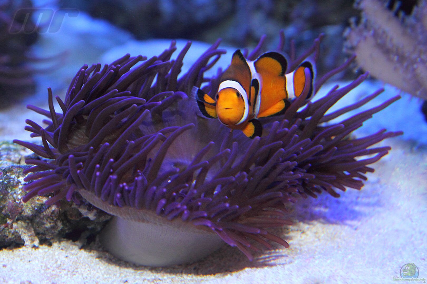 Hier findest du Infos zur Haltung und Beispiele für die Einrichtung eines Aquariums für Amphiprion latezonatus (Weissband-Anemonenfisch).