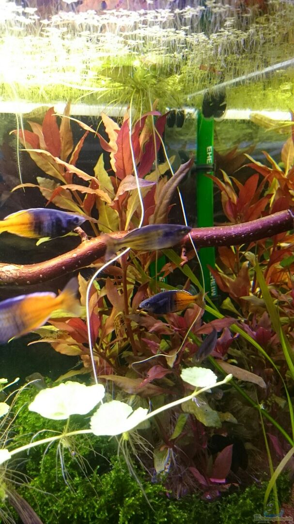 Juwel Rio 240 (wei??) Schwarze Rückwandfolie Juwel digital Thermometer Standard Juwel Bioflow Filter entfernt und durch Eheim Experience 350 Au??enfilter ersetzt. Bio CO2 Anlage Wöchentliche Düngung der Pflanzen mit Easy-Life Profito und Ferro Tägliche Zugabe von Easy-Carbo Wöchentliche Zugabe von Catappa-X und echten Seemandelbaumblättern.