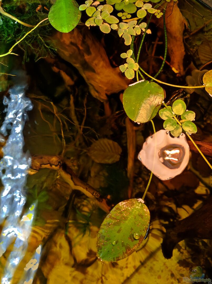 Dieses Becken soll ein kleiner Ausschnitt aus einem Nebenarm des Rio Negros (Uferbereich) darstellen. Ich habe versucht, dies so naturgetreu wie möglich nachzuarmen. Die Grundidee hinter der Aquariumeinrichtung war ein kleiner Nebenfluss am Ufer nachzustellen. Um diese Optik in meinem Aquarium zu kreieren, wurde besonders auf die Echtheit der Natur geachtet. Dafür bieten die zwei Wurzeln, die in das Aquarium ragen, einen zusätzlichen Schutz für die Fische während sie sich im Uferbereich aufhalten. [...]