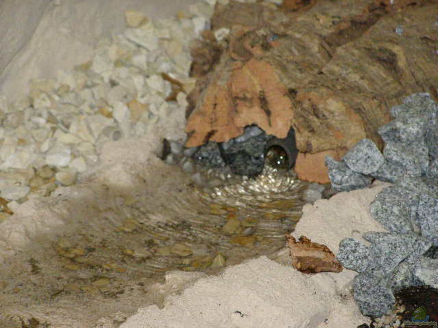 Steinformationsplatten an den hinteren Wänden und auch an der Decke. Insel selbsterstellt. Insel mit neuem nicht saugfähigem Holz ausgekleidet. Das Wurzel- bzw. ´Rindenholz´ blieb immer feucht. so konnten die Schildkröten nicht richtig abtrocknen. Durch Hartholz wird dieses jetzt vermieden. (Weiteres folgt) Sera aqua-test set