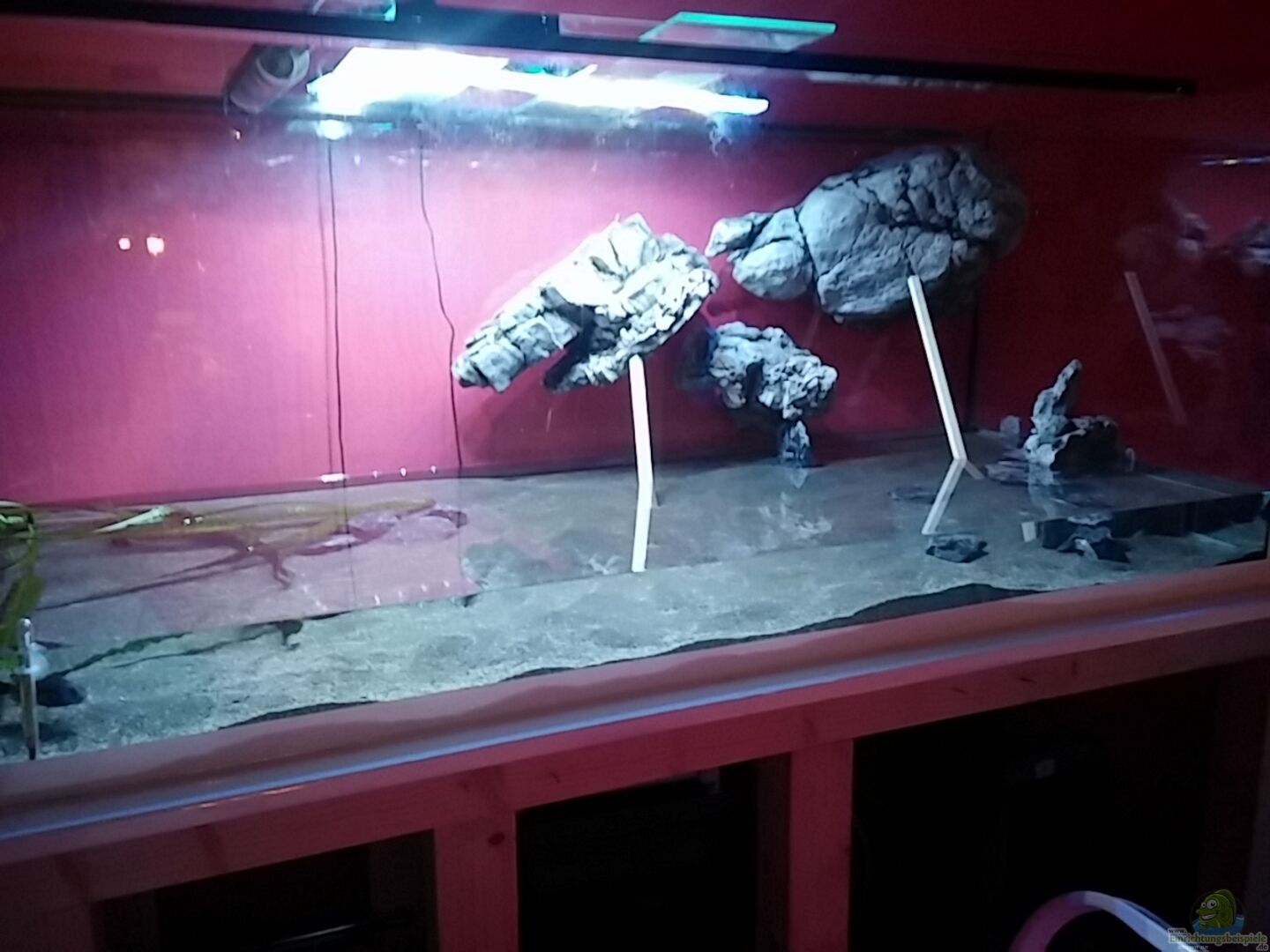 Altes Becken im Januar 2013 komplett leergeräumt. Hatte mir bei meinem (alten Becken) zwar sehr viel Mühe gegeben mit selbstgebauter Rückwand, aber immer wieder sah ich Wände von Rockzolid oder Back to Nature, die schon sehr geil aussahen. Also muss ich die auch haben!! Also nochmal: Becken von Aquatec , mein drittes übrigens und noch nie Probleme gehabt. Sto??verklebt 12mm Glas mit Sicherheitsnaht. Eine Querstrebe, keine Bohrungen. Steht auf einer stabilen Anrichte mit einer zusätzlichen Holzkonstruktion, [...]