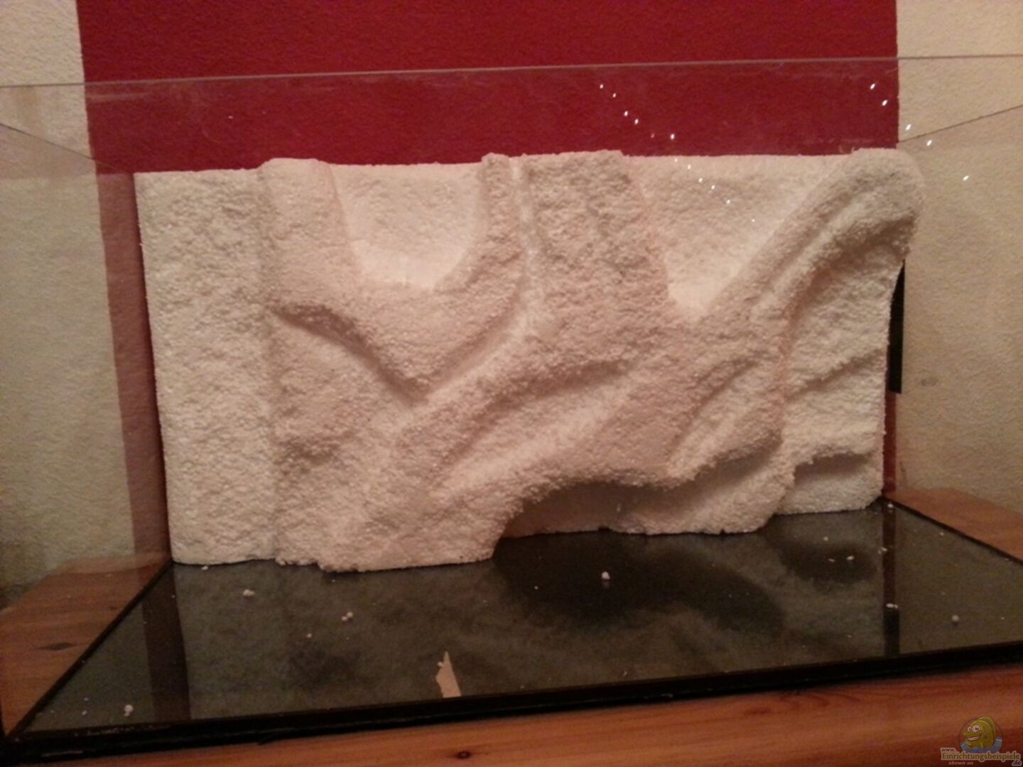 Rückwand selber gebaut mit Höhlen und hinter schwimmbar 2 x Tonröhren 3 x Wurzeln 1 x Lochgestern