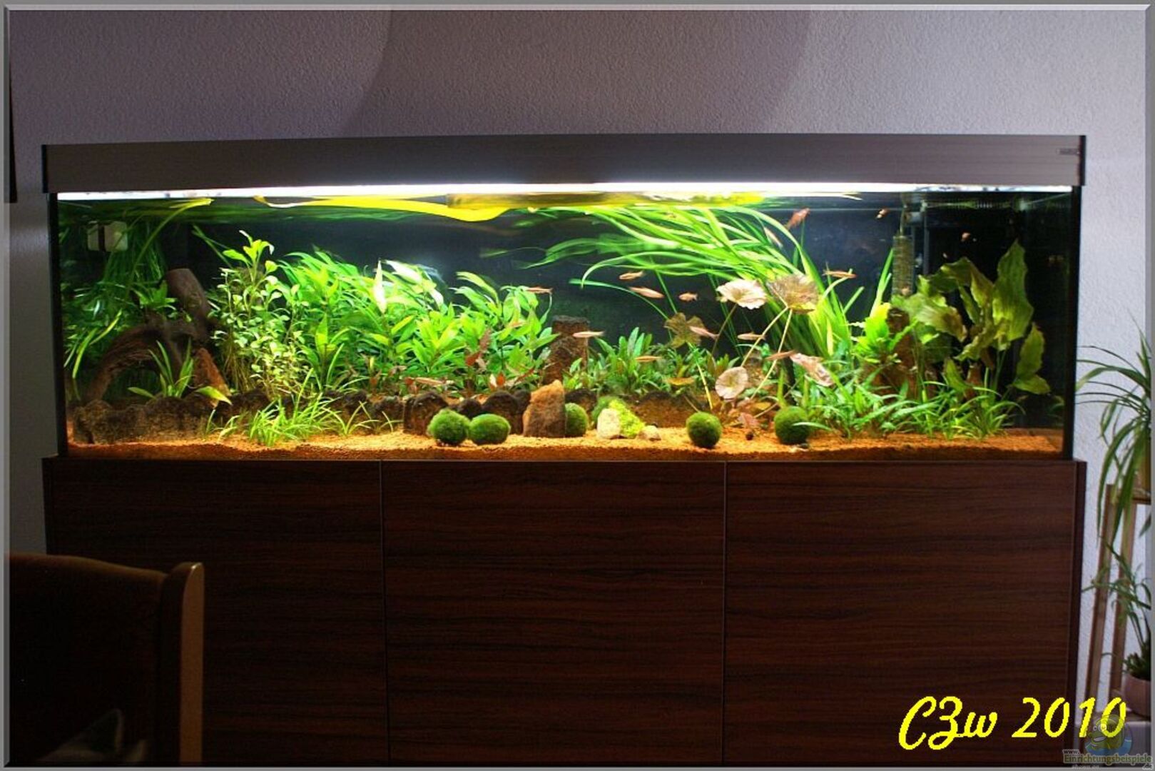 720l Becken auf Wunsch bei AQ Bauer (www.fish-and-reps) anfertigen lassen 87, 5cm hoher Unterschrank mit eigens angefertigter Verblendung / Decor Unterschrank mit 5cm höheren Türen als ´Kiesblende´ Unterschrank mit 3 Fächern sowie je 2 Einlegeböden in 2 der 3 Teile. Unterschrank aus 21mm Multiplex - komplett verleimt (umgelegte Kanten als Spritz- und Quellschutz) - innen wie aussen mit Decor versehen Innenliegender ??berlaufschacht mit schwarzem Glas und 3-fach Verrohrung [...]