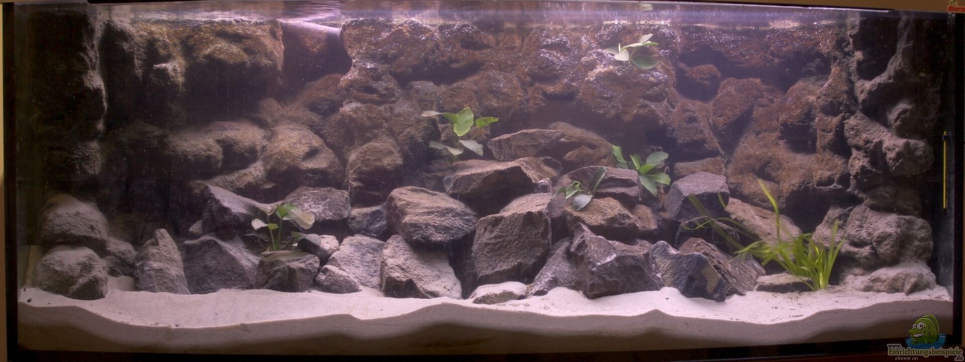 3teilige 3D-Rückwand Marke Eigenbau, zu 80% durchschwimmbar mit mehreren voneinander getrennten Höhlen. Details zur Rückwand: 12cm XPS-Platten (etwas fester als Styropor) mit PU-Schaum verklebt, mit dem "Fein Multimaster" (sensationelles Teil - aber Teppichmesser geht auch :) ) Strukturen eingearbeitet, 2cm Fliesenkleber mit schwarzer und brauner Dispersionsfarbe vermischt aufgetragen, XPS an der Hinterseite so viel als möglich ausgehöhlt/weggebrannt. Rückseite etwa 0, 5cm [...]
