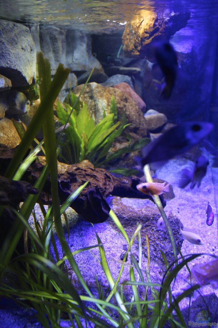 Becken von Rutschke Aquaristik, Floatglas geschliffen, Stärke 10mm, Sto??-und Wulstverklebung. Unterschrank im Eigenbau 150x60x72 mit zwei Türen (siehe Blog 2) Zwischen Unterschrank und Aquarium befindet sich eine Moosgummiplatte zum Ausgleich von Unebenheiten. Der Beckenboden innen ist mit einer 2 cm Styroporplatte ausgelegt als Druckausgleich und zum Schutz des Bodenglases. Darstellung einer ??bergangszone des Malawisees. Von der rechten Beckenhälfte, mit einigen Steinaufbauten [...]