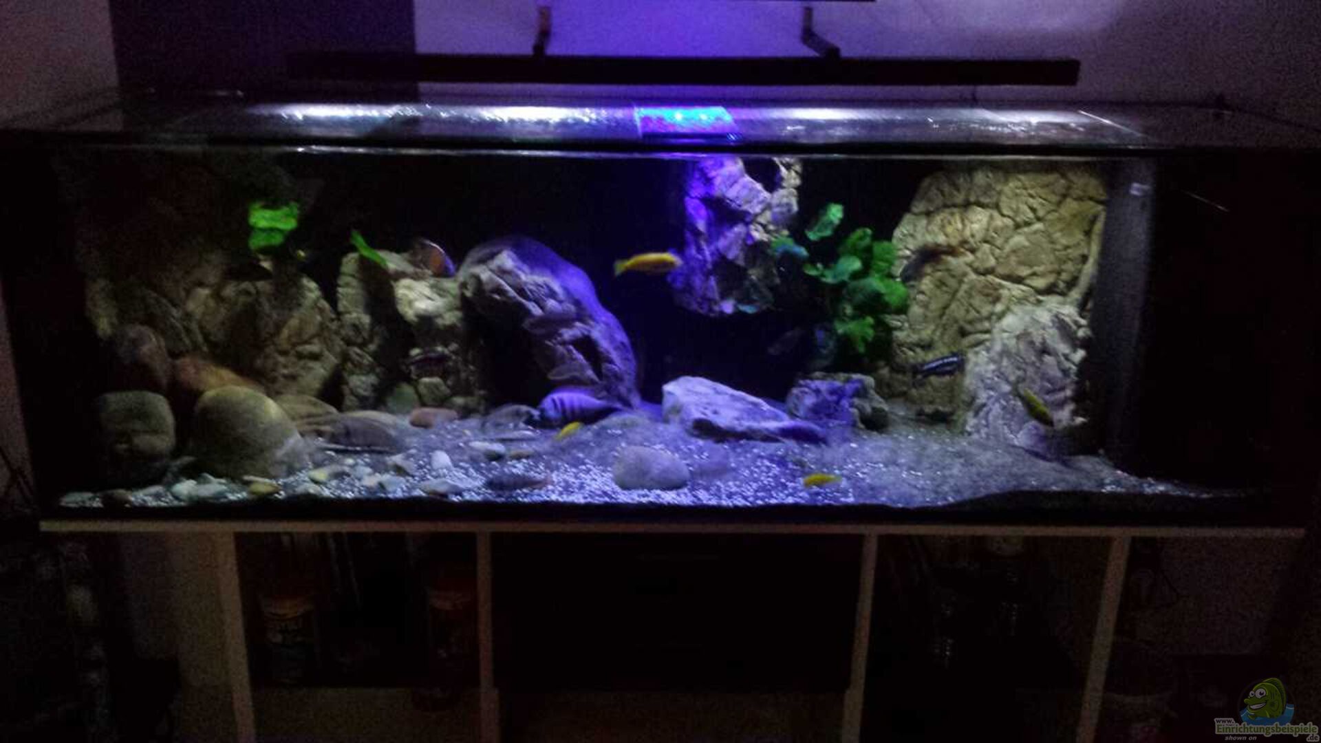 Aquarium ist von Fa. Friedberg, habe ich online ersteigert. Unterschrank ist selbstgebaut, 12mm Möbelplatten, jeweils doppelt gesetzt. In diesem Aqua waren beim Vorbesitzer Schildkröten, die entsprechende Insel wurde rausgetrennt, zum Glück befinden sich keine gro??en Kratzer im Glas.