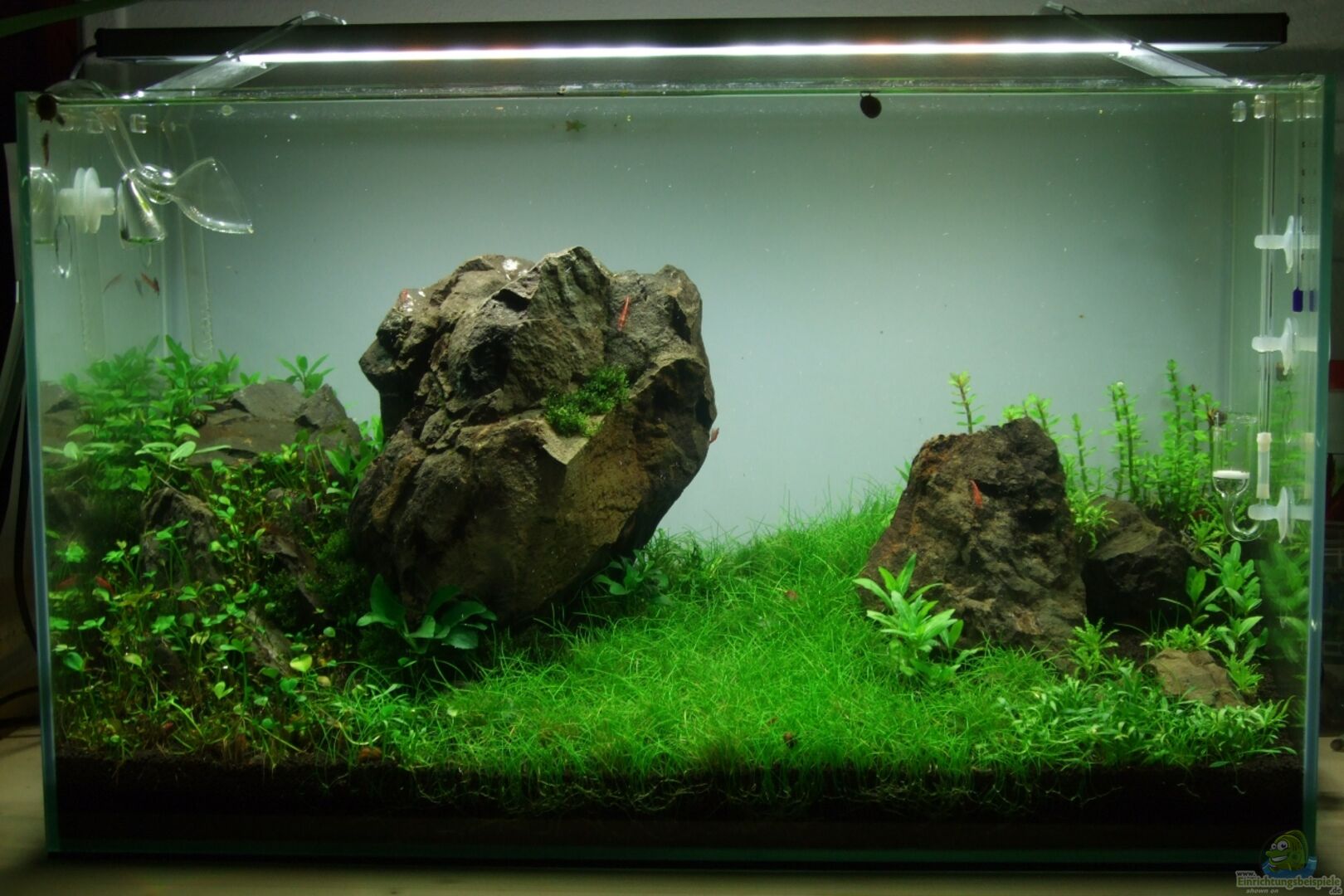 Transparent verklebtes Glasgarten-Aquarium. Die Rückwand wurde mit Milchglasfolie beklebt.