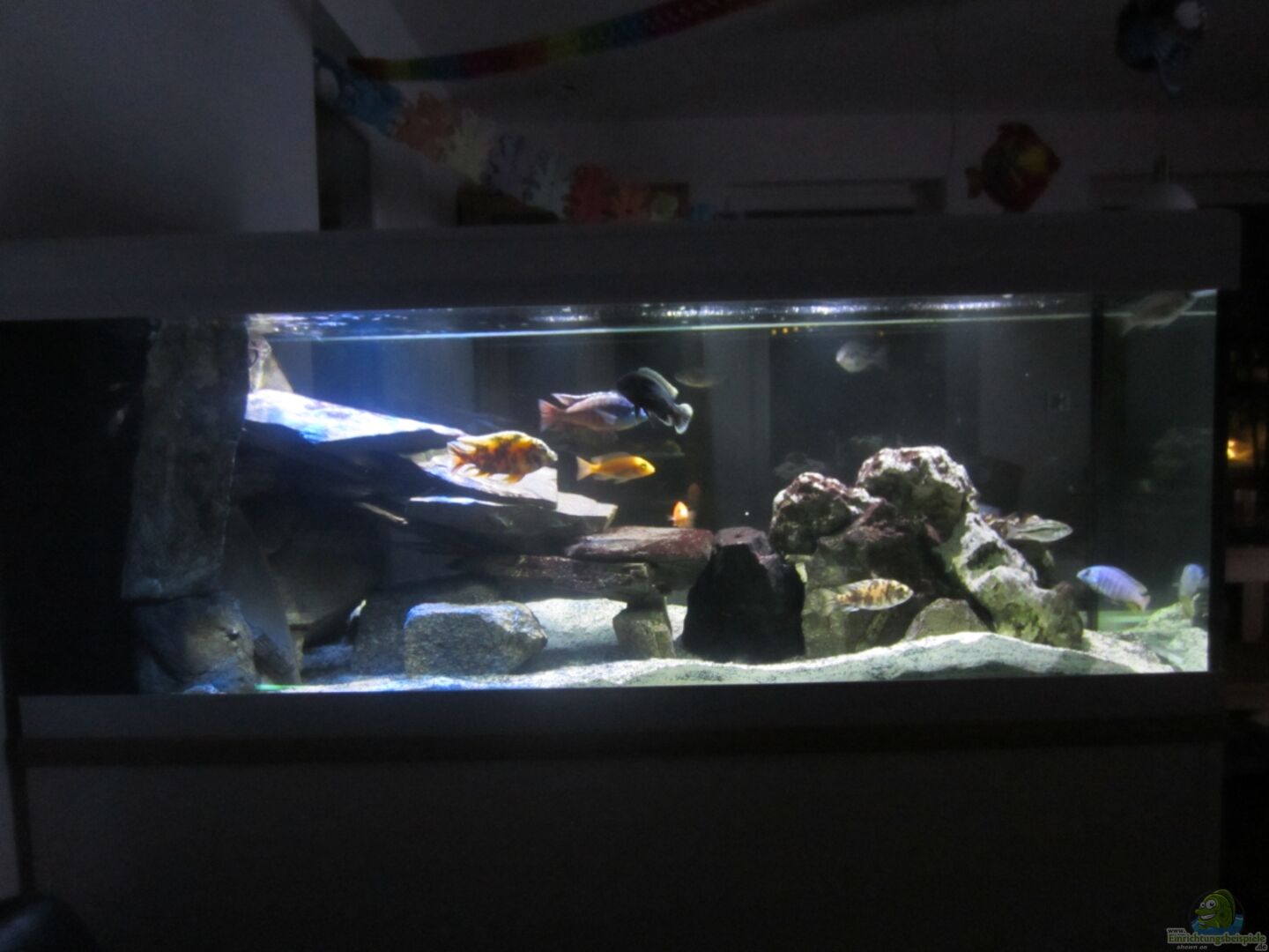 Technikschacht (10 cm) aus schwarzem Glas, somit keine Schläuche und Kabel sichtbar. Ma??becken als Raumteiler, auf einer Seite konisch verlaufend von einem befreundeten Glaser aus 15mm Glas mit schwarzem Aquariumsilikon verklebt, ein Mittelsteg. Aquarium steht auf einer Schaumstoffmatte, am Boden des Aquariums liegt eine dünne Styroporplatte zum Schutz des Glases. Aquariumabdeckung und Kiesblende aus Aluminium auf Ma?? von Fa. Sensolight. Unterschrank Erle Massivholz erweitert mit 50mm Staffeln, [...]
