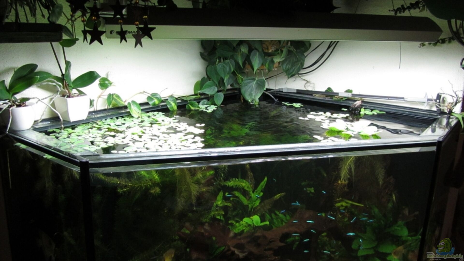 Offenes Eckaquarium ca. 550 liter Unterbau selbst gemauert Aquarium ist eine Sonderanfertigung (Baujahr-2010) Wulstverklebt Rüchwand:schwarze Folie Ich freue mich über Ratschläge, Ideen und Kritiken...