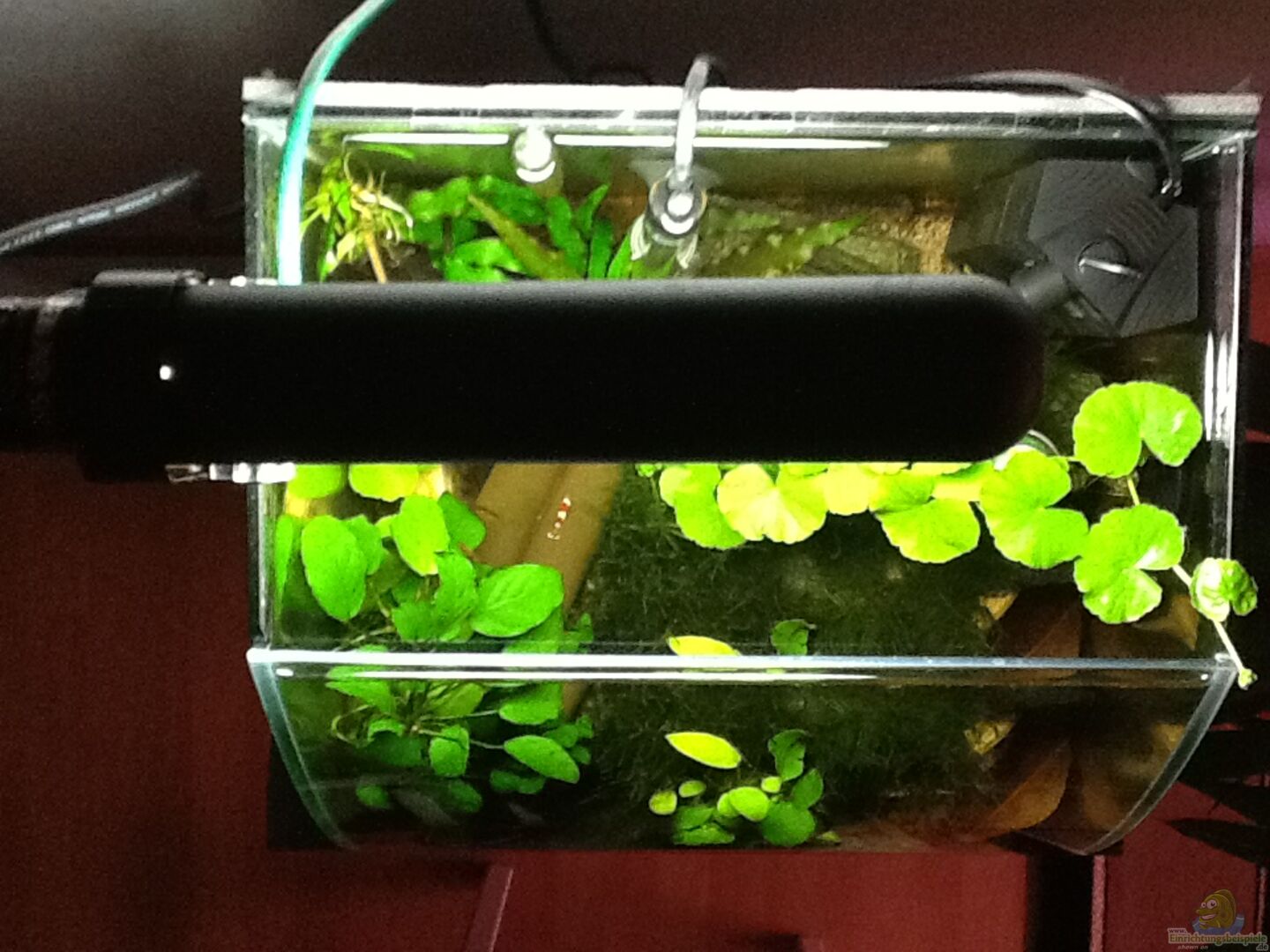 Nano Cube 30 Frontscheibe nach oben gebogen Aussenkanten leuchten bei angeschaltetem Licht grün Rückwand mit einer schwarzen Aquariummatte verklebt(wegen der Tiefenwirkung) Becken hat keine Abdeckscheibe Habe mich für ein Becken mit Garnelen und den kleinsten Fischen entschieden.Ich muss den Garnelen viele Verstecke und Höhlen bauen.(dessen bin ich mir schon bewusst).WILL ja nicht gleich den ganzen Nachwuchs an die Fische verfüttern.Habe die Fischchen zum Einfahren des Beckens eingesetzt(wegen [...]