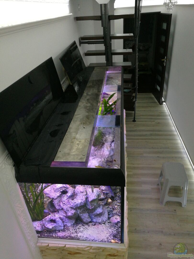 erstmal Entschuldigung für mein schlechtes Deutsch!!! Jetzt zu meinem becken: 3x bohrung 27mm im boden (für filter einlässe) verkleidet mit selbstgebautem felsen (aus fliesenkleber).davon 2 bohrungen haben ansaugung 5cm über bodengrund und 1 bohrung hat ansaugung direkt von wasseroberfläche (funktioniert auf die prinzip von skimmer) 1x bohrung an der seitenscheibe (ca. 10cm unten wasseroberfläche) für überlauf direkt ins Abflus. Täglich wird ca.20-30 Liter frisches wasser ins [...]