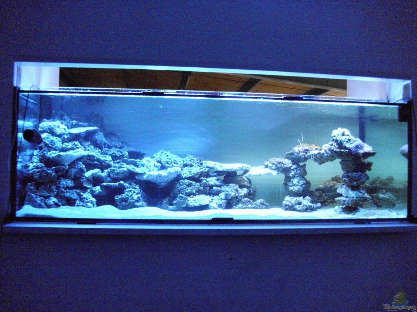 Sto??verklebt, 15er Glas 50er Ablaufrohr und 20er Zulauf Im Zimmer kann man nur die Frontscheibe vom Becken sehen. Die anderen Seiten sind ausserhalb vom Zimmer und mit Styrodur abgedeckt, kann man bei Bedarf aber abmachen, z.B. wenn man neugierig ist was im Riff so los ist :)
