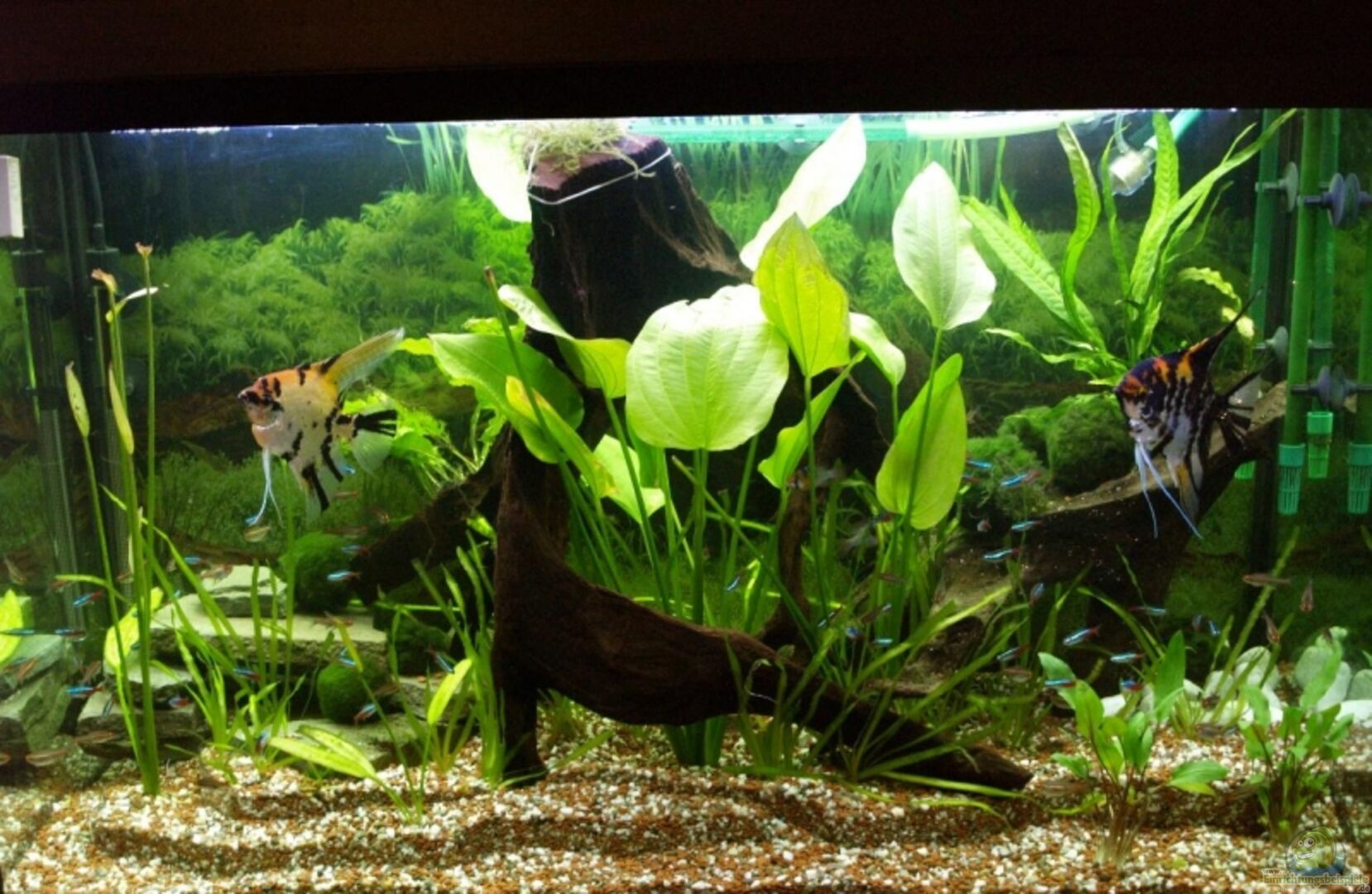 10 mm Glas mit Sto??verklebung, Isomatte als Beckenauflage Das Becken ist umrahmt von 2 Ikea Billy Regalschränken: links ein 80cm Vitrinenschrank, rechts ein ´offener´ 60cm Regalschrank. Zwischen den beiden Regalen ist 110cm Platz. Diesen habe ich mit 3 110cm ´Lack´ Regalen auf im oberen Bereich ´überbrückt´. Der untere Bereich ist für das Aquarium reserviert. Dieses steht auf 3 Ziegeldoppelsäulen (12 Standardziegeln) und einer 5cm Arbeitsplatte im passenden Buchenton. Als Verblendung [...]