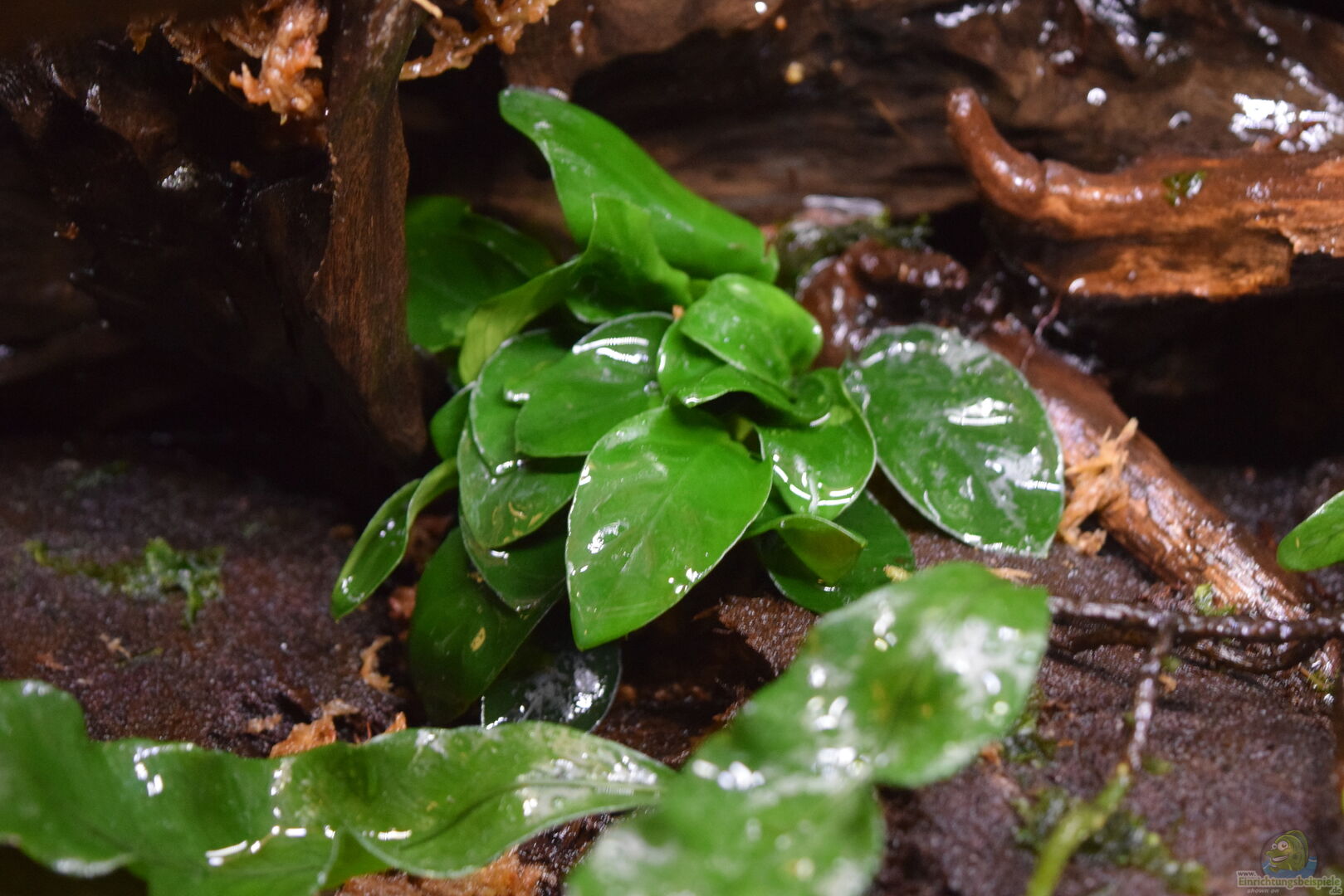 Ferns/Farne: Pyrrosia lanceolata, Selaginella unicata, Polypodium formosanum, Microgramma nitida Bromeliads/Bromelien: Neoregelia Hannibal, Neoregelia Fireball, Cryptanthus microglazioui Bodendecker/Ground plants: Bucephalandra spec. Green Velvet, Anubias bartei var. nana Mosses/Moose: Taxiphyllum barbieri, Leptodictyum riparium, Orchids/Orchideen: Barbosella cogniauxiana, Pleurothallis macroblepharis, Kletterer/Climbing plants: Ficus scandens, Epipremnum spec., Ficus punctata