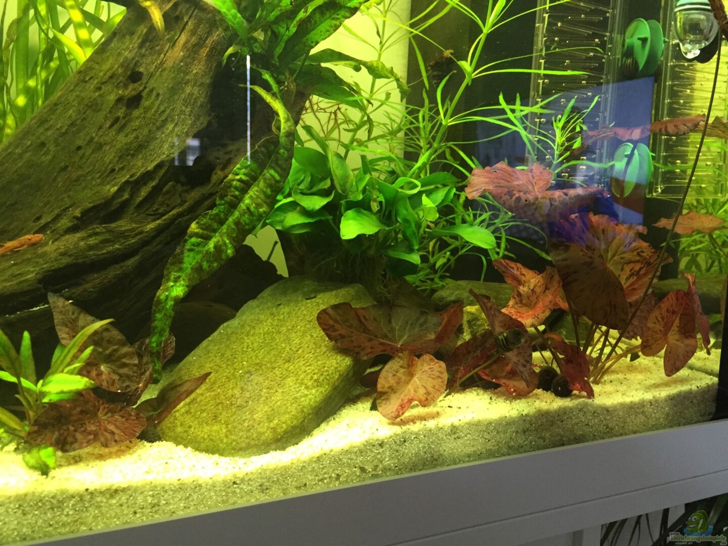 Alternanthera Reineckii Bronze Alternanthera Reineckii Rot Anubias Barteri Anubias Barteri Nana Cryptocoryne spec. Legroi Nymphaea Rot Hemianthus Callitrichoides Echinodorus Cordifolius Javafarn Vallisneria Australis Curly Bacopa caroliniana Mit Easylife Wochendünger wird gedüngt