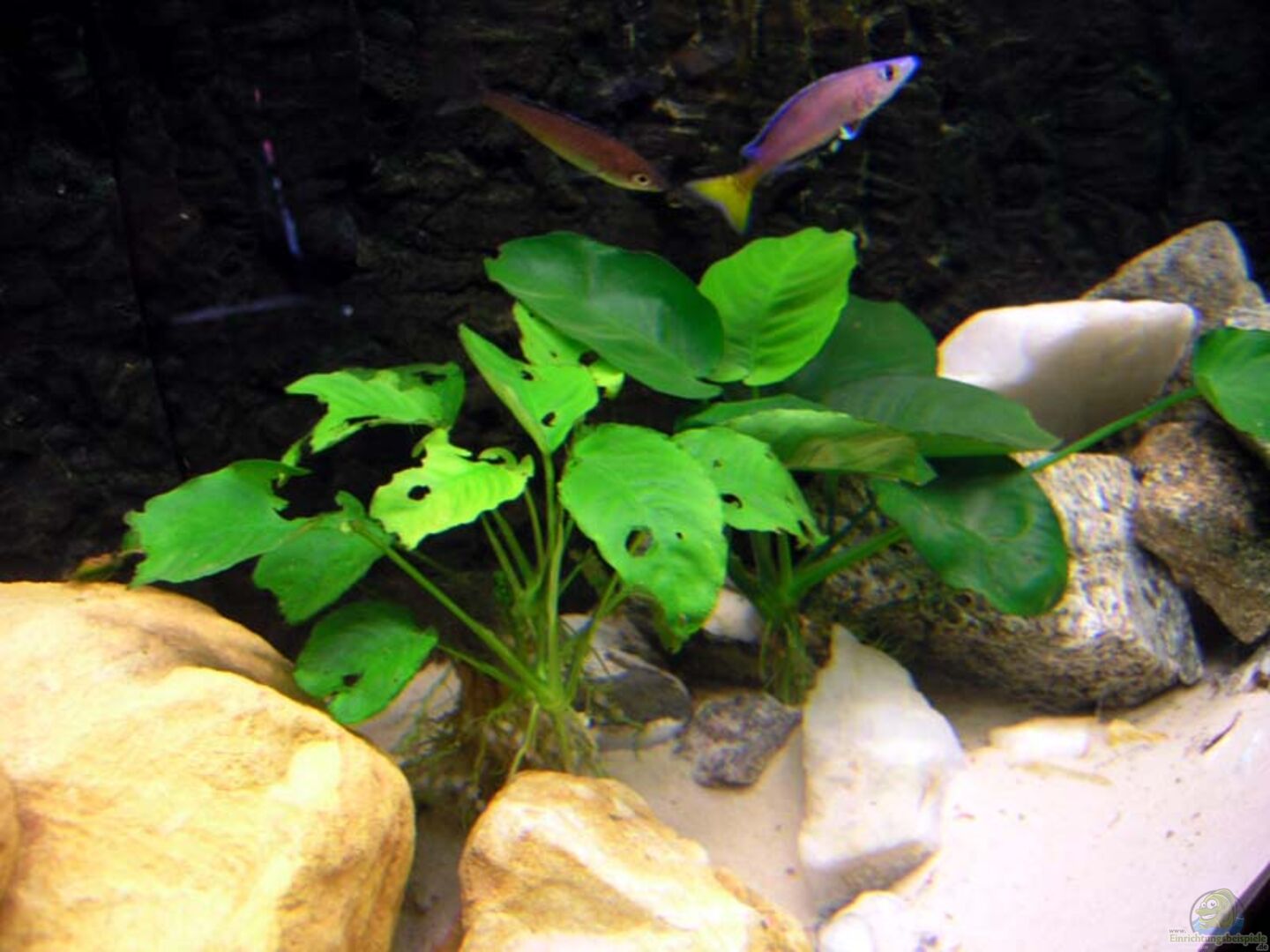 Hier findest du Infos zu Anubias heterophylla (Verschiedenblättriges Speerblatt) und Beispiele für die Gestaltung deines Aquariums mit dieser Pflanze.