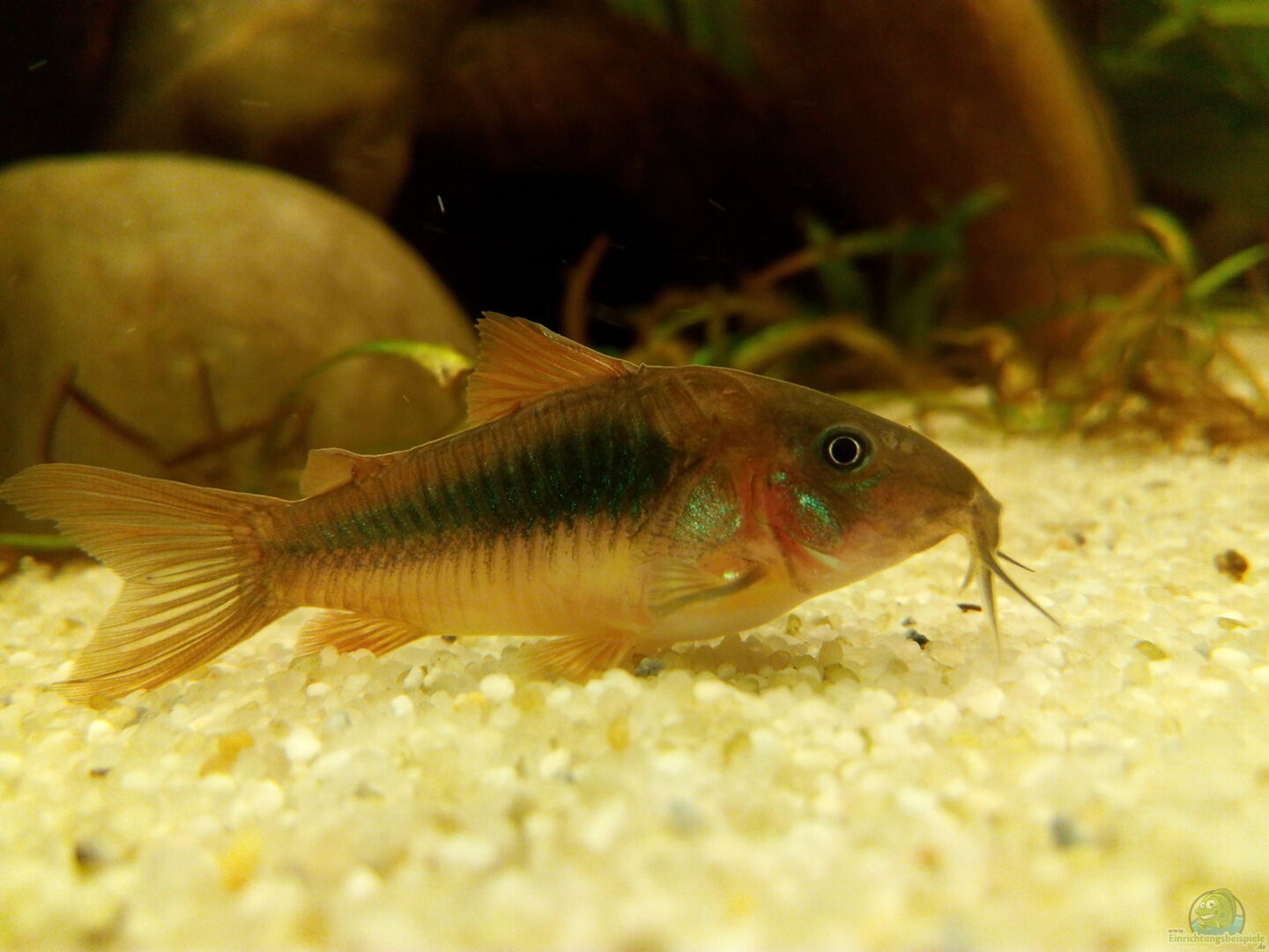 eingesetzt am 02.01.2016 - 5.6.0 Pristella maxillaris (Sternflecksalmler, Wasserstieglitz) - 0.0.6 Corydoras aeneus (Metall-Panzerwels) - 0.0.6 Corydoras habrosus (Schachbrett-Zwergpanzerwels) - 0.0.11 Otocinclus vittatus (Längsstreifen-Ohrgitterharnischwels) - Artbestimmung unsicher! -1.2 Cleithracara maronii (Maronibuntbarsch)