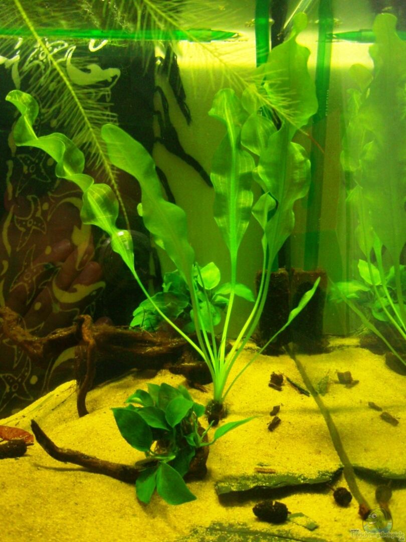 Anubias hastifolia, Anubias barteri var. ´nana´, Amminia gracilis, Nymphea sp., Valisneria spiralis, Aponogeton sp. Pistia sp., Wasserlinsen