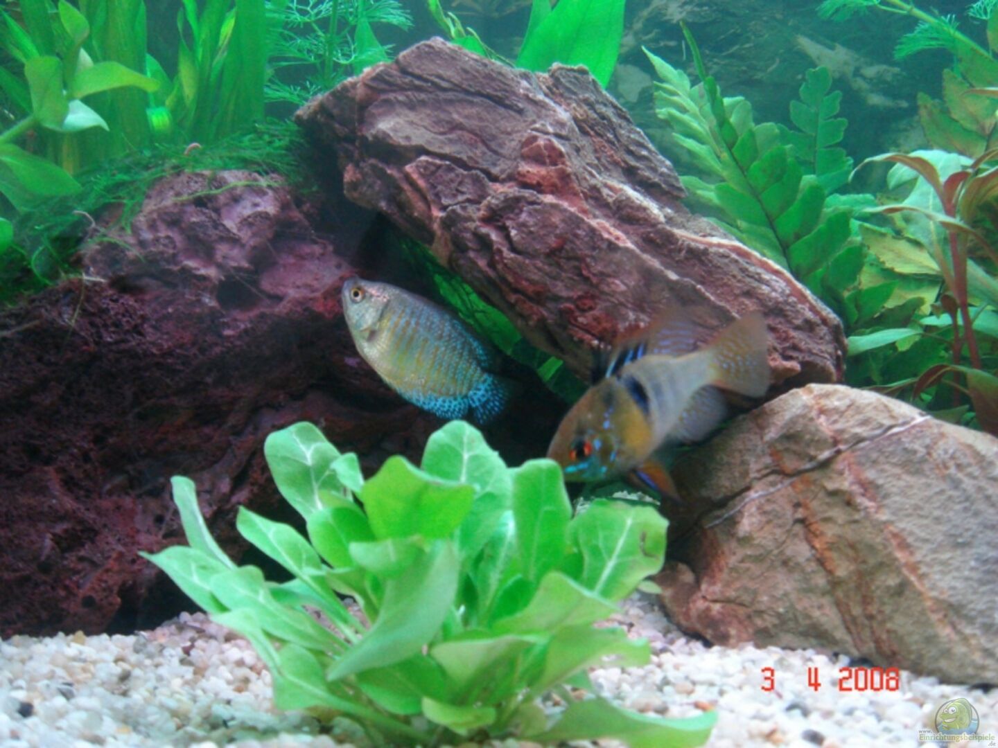 5 Ohrgitterharnischwelse ( Ottocinclus Vittatus) 8 Marmorpanzerwelse (Corydoras paleatus) 9 Schleierkardinälchen (Tanichtys albonubes) 2 Schmetterlingsbuntbarsche (Mikrogeophagus ramirezi) 2 Zwergfadenfische (Colisa lalia) 12 Amano Garnelen