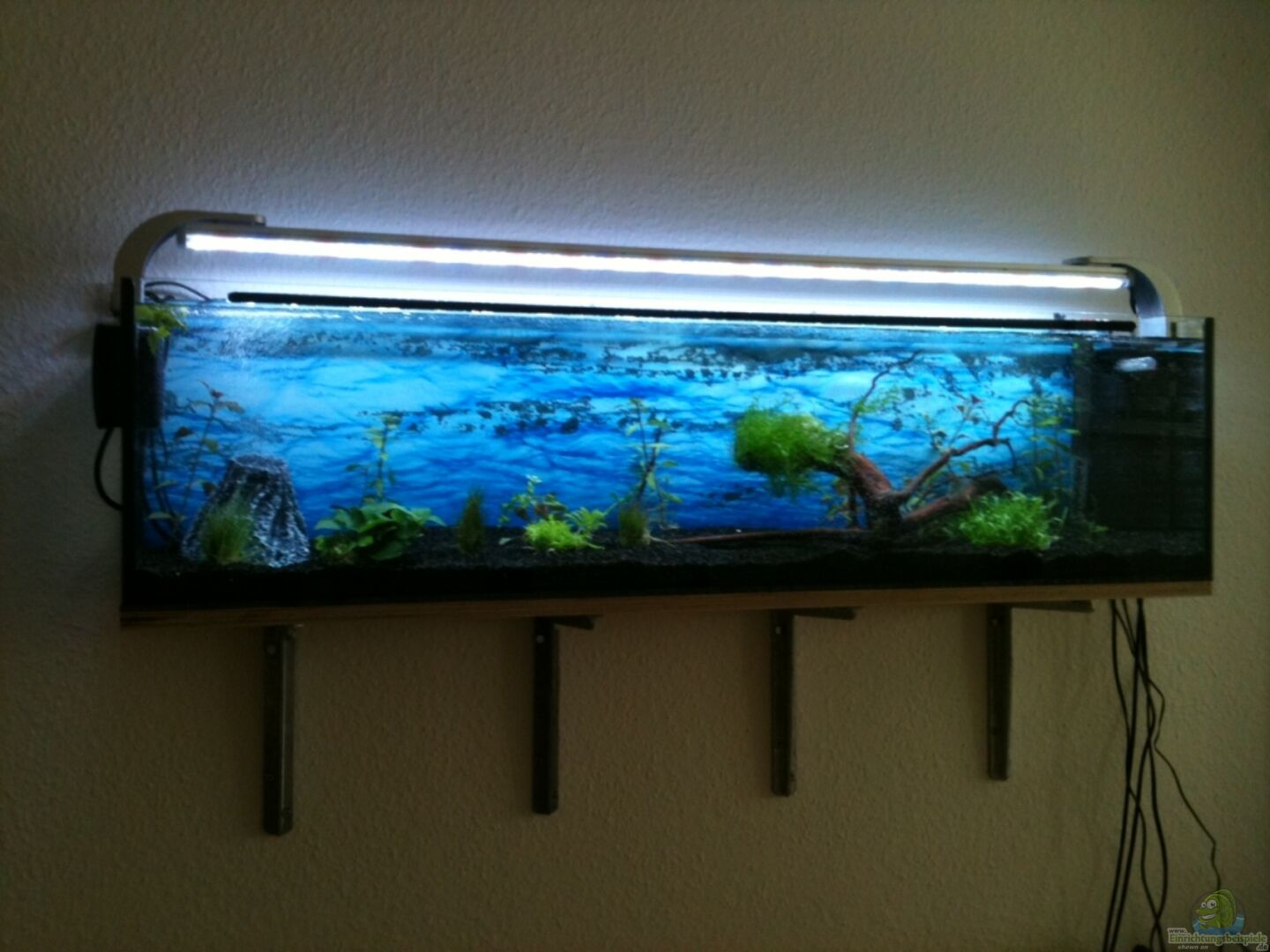 Wandaquarium: steht auf einer Multiplexplatte. Wurde mit Schwerlastkonsolen und Schwerlastdübel und -schrauben gesichert