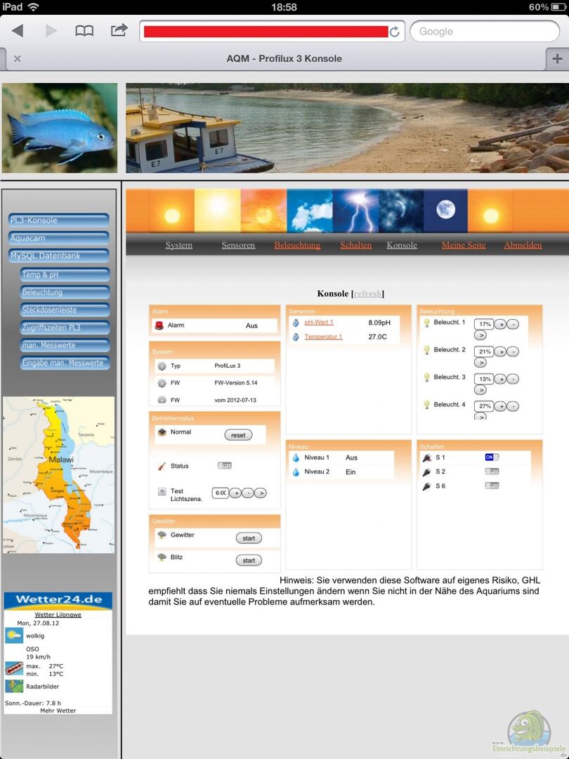 Aquariumcomputer: GHL Profilux 3 Die gesamte Steuerung von Beleuchtung, Heizung, Strömung und Wettersimulationen wird durch den Profilux 3 gesteuert. Eine genauere Beschreibung der Programmierung erfolgt, wenn das Beckem im Betrieb ist oder die Lieferzeiten sind nach hintern verschieben:-) Erworben habe ich das ganze bei Aqua-IT, nochmal vielen Dank für die gute Beratung, auch am Wochenende. Strömungspumpe: Tunze Turbelle stream 6105 (steuerbar) Kabellänge: 5 Meter Strömungsleistung: [...]