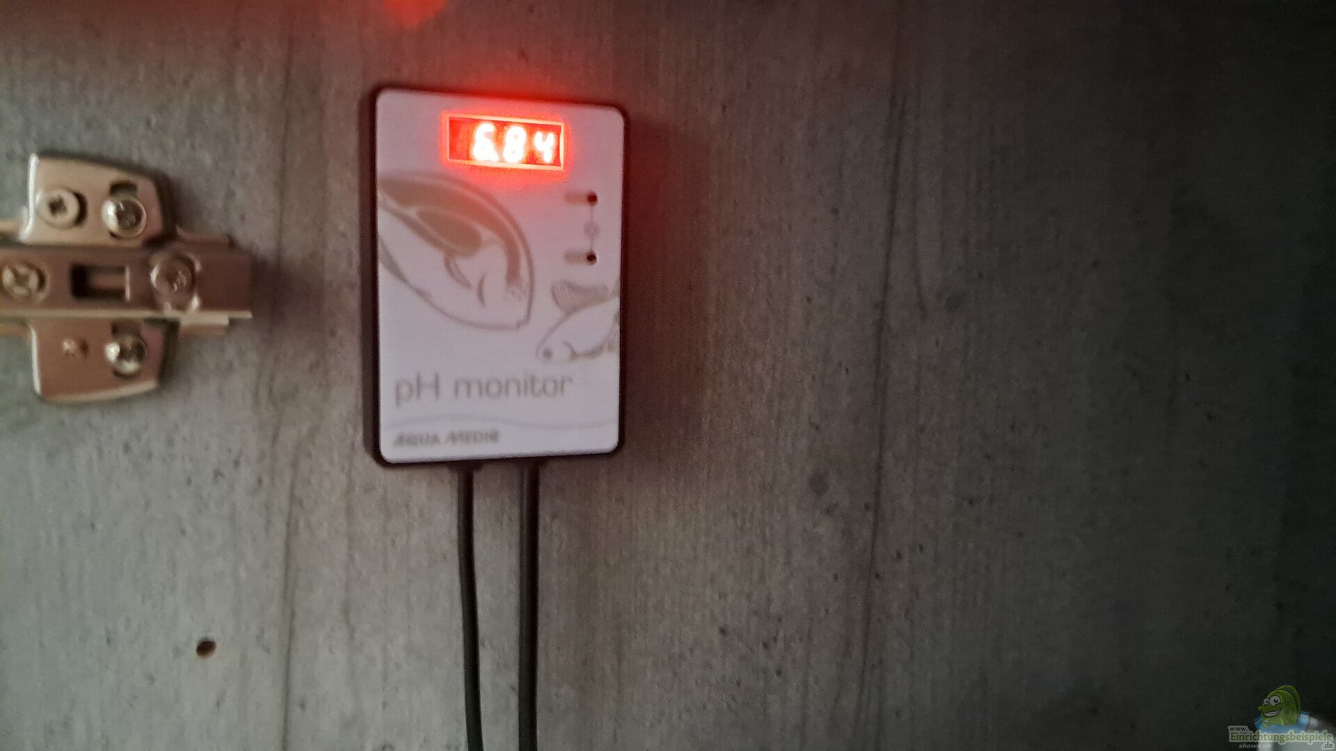 Hailea V 10 Membranpumpe, mit zwei angeschlossenen Ausströmersteinen von Tetra ( AS 40 ), "unsichtbar" platziert hinter den BTN-Modulen. Fluval E-Regelheizer 300 W, mit integrierter Temperaturanzeige ( Schutzkorb wurde entfernt, da sonst verminderte Wärmeabgabe ) Tunze Scheibenreiniger Care Magnet long Aqua medic pH - Messgerät