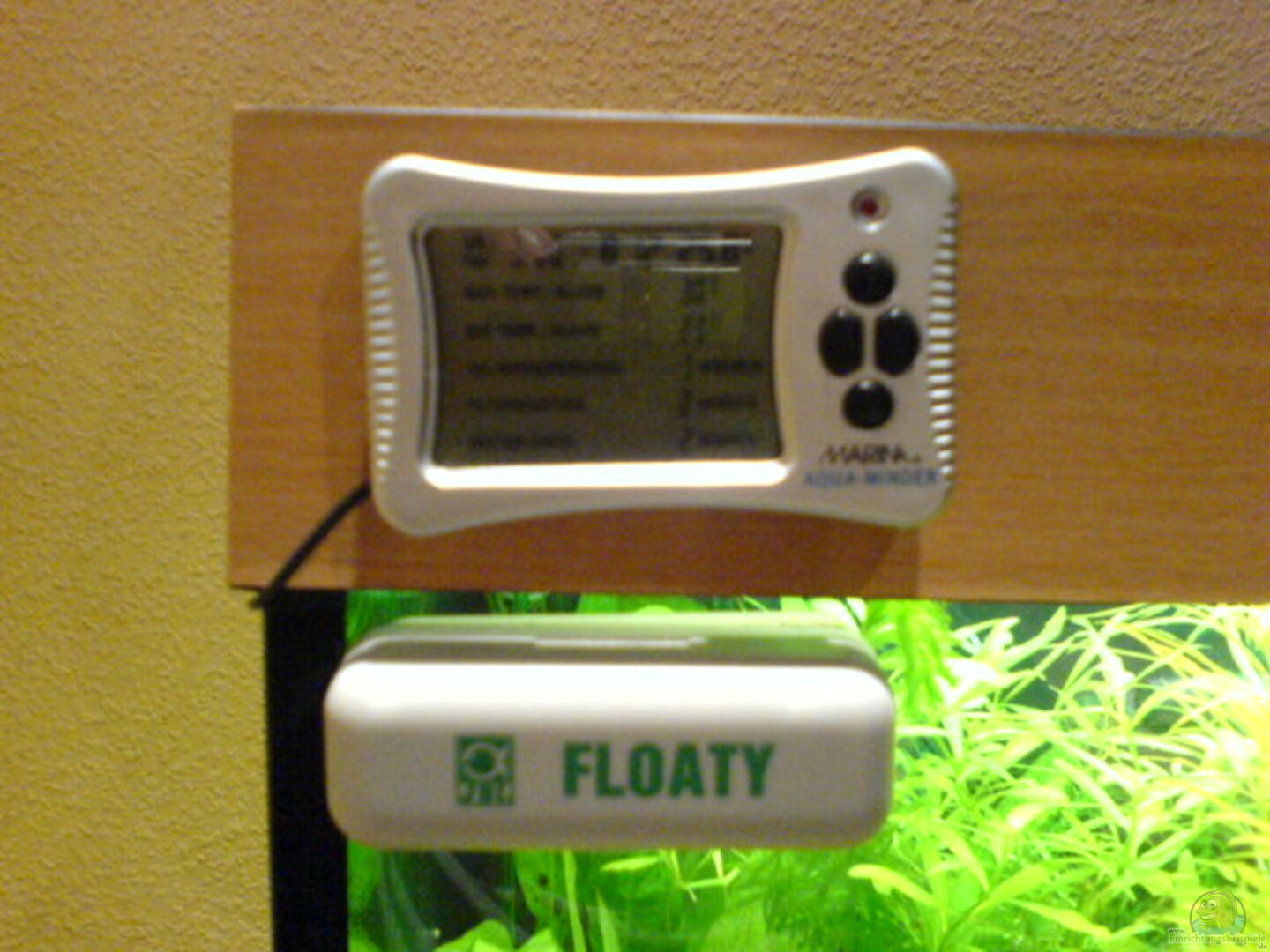 Eine Tetra APS 300 Durchlüftungspumpe mit zwei Kermikausströmern, die vor der Rückwand unter dem Kies versteckt sind. Die Pumpe läuft rund um die Uhr mit geringem Luftdurchlass. Ein Juwel Heizstab mit 200 Watt, der standardmä??ig im Filter untergebracht ist. Einen Aqua Reminder inkl. digitalem Thermometer, damit man keine wichtigen Termine ud Wartungsarbeiten verpasst. Zum Reinigen einen Floaty und einen handelsüblichen Scheuerschwamm.