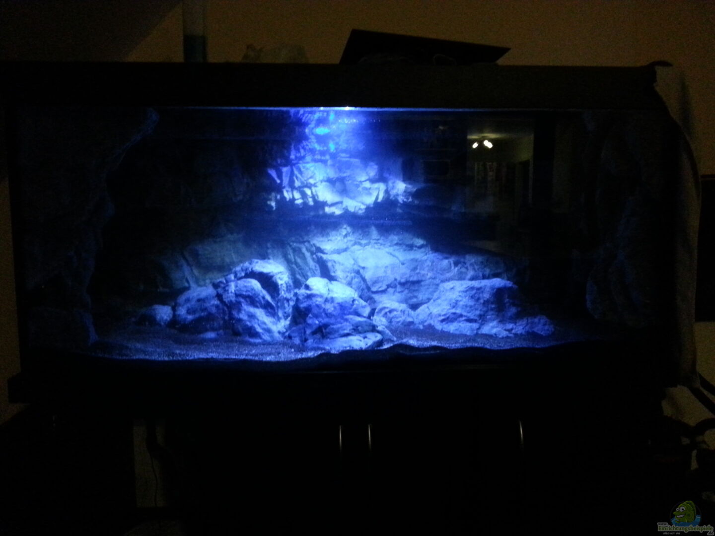 Das Aquarium mit Unterschrank und Abdeckung wurde bei Friedeberg gefertigt, 13mm Floatglas + 1 Querverstrebung, der Schrank ist mit Aluprofil innen verstärkt um einen grö??eren Innenraum zu erhalten.Es wurde komplett mit Rockzolid Modulen gestaltet (Timor). 2 hängende Felsen jeweilsaufgeklebt auf eine Plexiglasplatte (4mm stark), Rückwand ist hinterschwimmbar an 3 Stellen, sowie die Stones im Vordergrund und jeweils eins an jeder Seitenscheibe dienen als Höhlen und sind somit auch Beschwimmbar. [...]