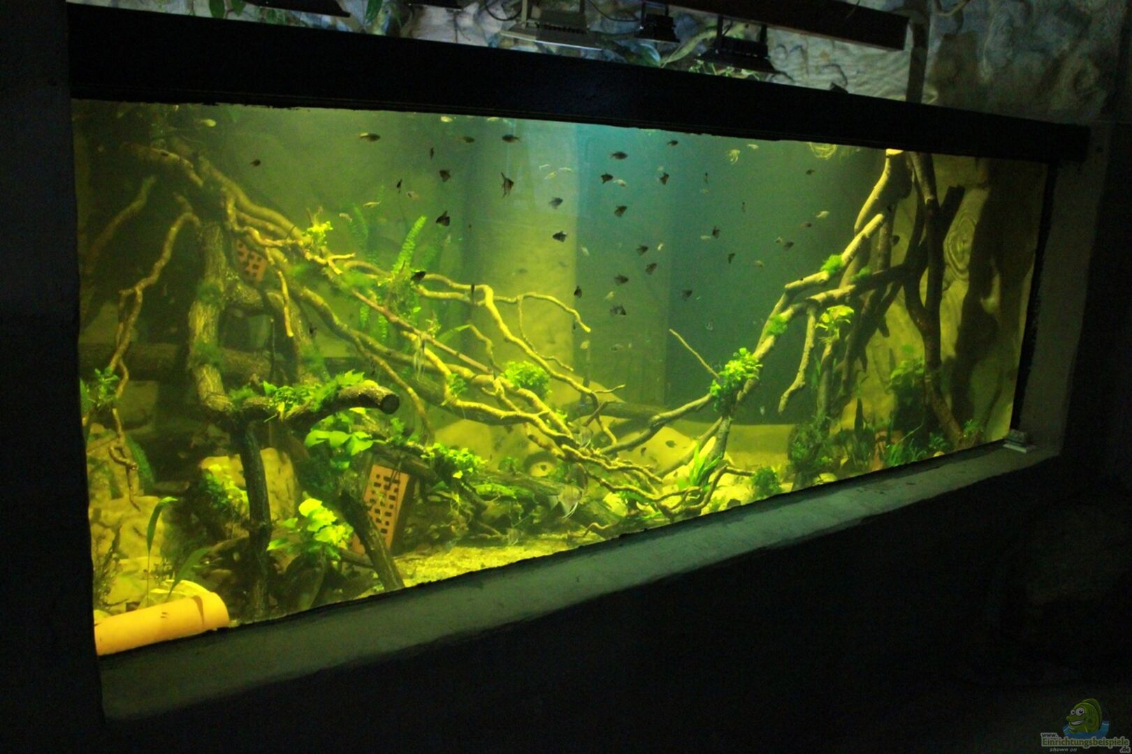Das Auqarium wurde aus Kalksandsteinen gemauert, mit Dichtschlämme und anschlie??end Impermax abgedichtet. Alles wurde in kompletter Eigenleistung gebaut. Die Aquarienscheibe hat die Ma??e 290 cm x 100 cm, bestehend aus 2 x 15 mm VSG (Verbundsicherheitsglas) + 1, 52 mm Folie und wiegt rund 220 kg. Im oberen Bereich der Scheibe befindet sich ein Stahlträger. Für dieses Aquarium wurde extra ein passender Raum noch mit am Haus angebaut (Haus ist komplett unterkellert, ging also nicht [...]