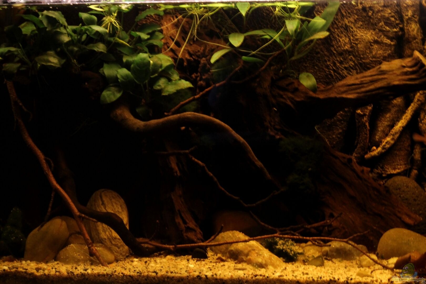 das Becken ist eine Sonderanfertigung von USW Aquaristik es wird aus 10mm Floatglas gefertigt, wobei die Frontscheibe aus Wei??glas ist. Zum Schrank ist zusagen, das es sich hierbei um handelsübliche Kommoden handelt, es sind zwei, die nebeneinander gestellt wurden. Die eigentlichen Trägerplatten bestehen aus 17er Platten, um eventuelle Unebenheiten auszugleichen, kommt noch eine Trägerplatte oben drauf (und eine Schaumgummi Unterlage). Die Trägerplatte ist eine 19mm Buchen Leimholzplatte, [...]