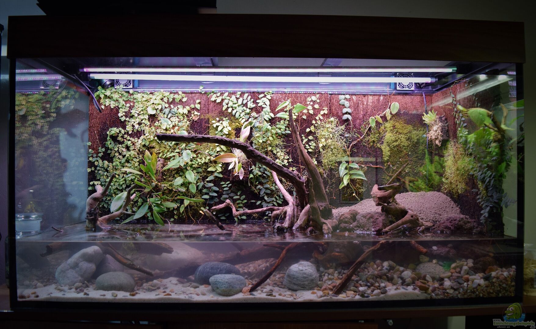 Das Becken hier lief vorher unter dem Namen....A river runs through it. Es wurde aufgrund eines massiven Cyanobakterien-Befalls im Bachlauf, den ich nicht unter Kontrolle bekam, am 27.01.2019 komplett umgeändert. Der Wasserstand wird ca. 15 cm betragen, was ca. einem Wasservolumen von 70 Liter entspricht. Im rechten hinteren Eck befindet sich eine Strömungspumpe von Aquael, die mit Bodenfilterplatten verbunden ist. Darauf steht ein Gerüst aus Lichtstegplatten ca. 6 cm hoch. Und darauf befindet [...]
