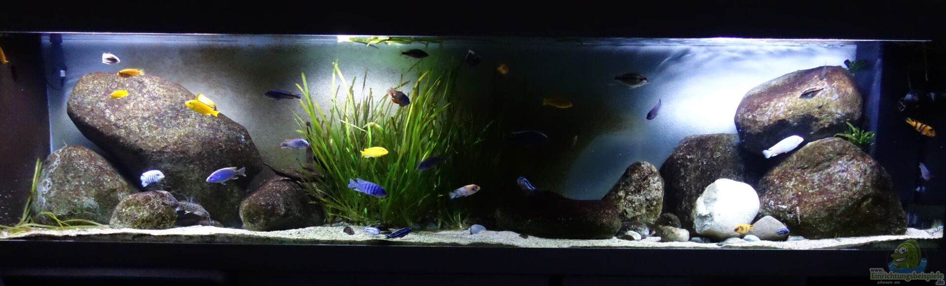 Nach zwei Wochen Laufzeit gab es leider ein grö??eres Problem, die Querriegel hatten sich alle gelöst und die Frontscheibe wölbte sich beängstigend weit nach vorne. Der Aquariumbauer hat es am nächsten Tag sofort repariert, aber das Aquarium musste dann 10 Tage mit nur 30% Wasserstand laufen, wodurch der Filter nicht lief. Die Bilder sind zwei Tage nach Wiederbefüllung entstanden, das Wasser ist noch etwas trüb. Bessere Bilder werden folgen. Viele Anregungen habe ich aus dem Cichlidenforum, [...]
