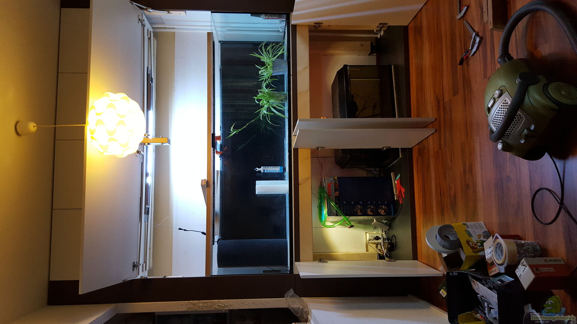 In meinem Südamerika Becken soll ein kleiner klarwasser Nebenfluss im Amazonas Gebiet imitiert werden. Meine Unterkonstruktion besteht aus 10x10cm Balken. Als Bodenplatte habe ich eine 38mm MDF Platte, welches für ein gute Gewichtsverteilung sorgt. Darauf habe ich die BalkenKonstruktion mittels Küchenfü??e (450kg pro Fu?? von hettich ) ausgerichtet und zusätzlich an der tragenden Wand verschraubt. Oben an der Decke habe ich ebenfalls eine Lattenkonstruktion verschraubt und mit Spanplatte [...]