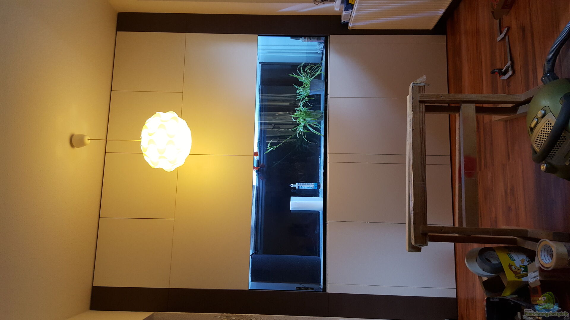 In meinem Südamerika Becken soll ein kleiner klarwasser Nebenfluss im Amazonas Gebiet imitiert werden. Meine Unterkonstruktion besteht aus 10x10cm Balken. Als Bodenplatte habe ich eine 38mm MDF Platte, welches für ein gute Gewichtsverteilung sorgt. Darauf habe ich die BalkenKonstruktion mittels Küchenfü??e (450kg pro Fu?? von hettich ) ausgerichtet und zusätzlich an der tragenden Wand verschraubt. Oben an der Decke habe ich ebenfalls eine Lattenkonstruktion verschraubt und mit Spanplatte [...]