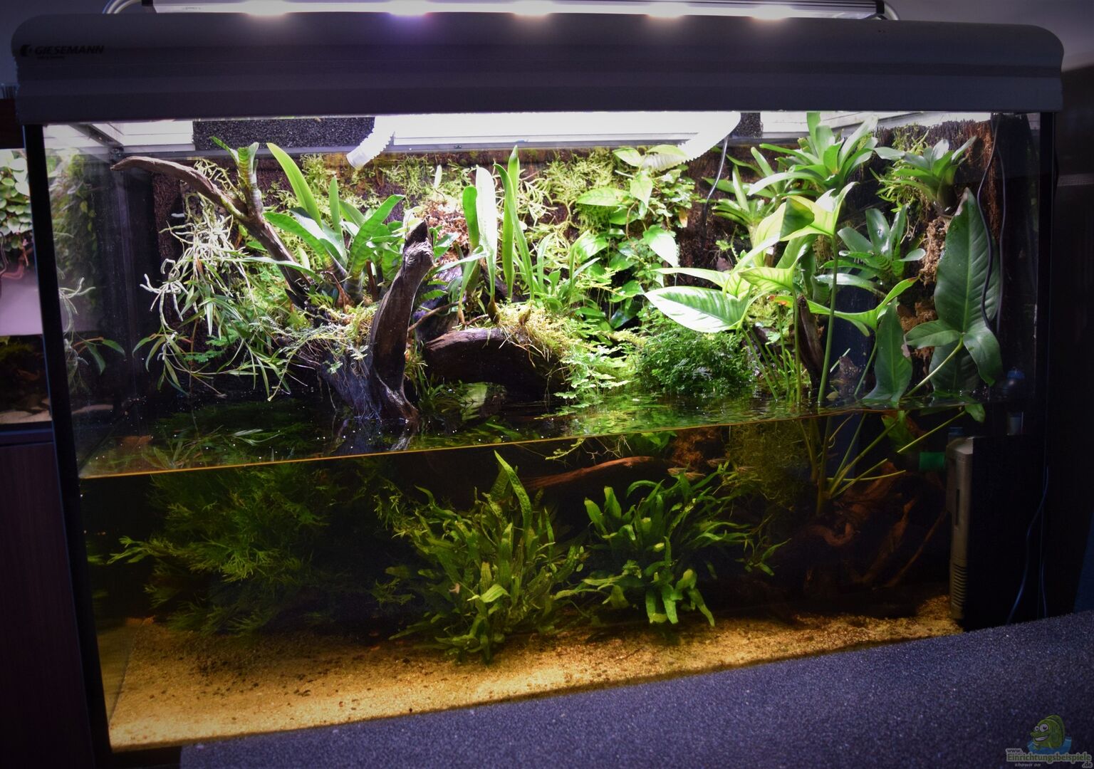 Hier wurde ein klassisches Aquarium zum Aquaterrarium umgebaut. In den oberen Bereich wurden Xaximplatten verwendet um die Rückwand zu gestalten. Sie wurden mit Aquariensilikon eingeklebt. 2 der Rückwände sind von aussen mit schwarzer Farbe gestrichen worden. Man kann somit von 2 Seiten ins Becken schauen. Der Wasserstand beträgt knapp 25 cm. Um auch über Wasser Fläche zu schaffen für die Bepflanzung wurden sämtliche Mangrovenwurzeln im Haus, Keller und Garten zusammengesucht und erstmal [...]
