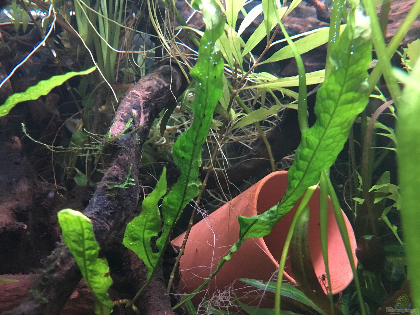 Das Aquarium hat einen emersen Teil, der im Stil eines Ripariums angelegt wurde 8 mm Glasstärke Abdeckung aus Acrylglas